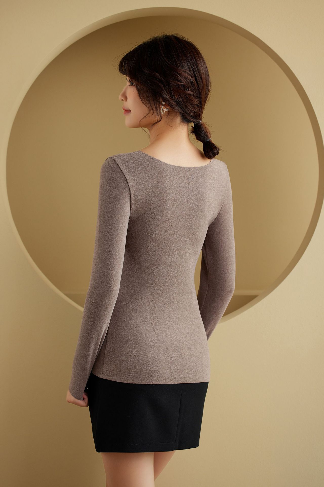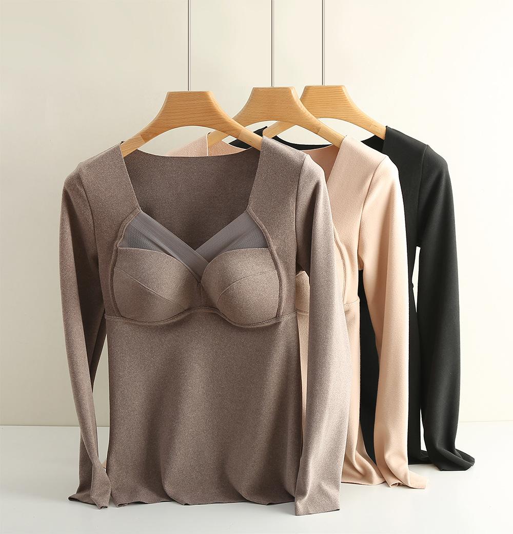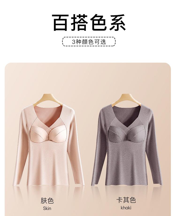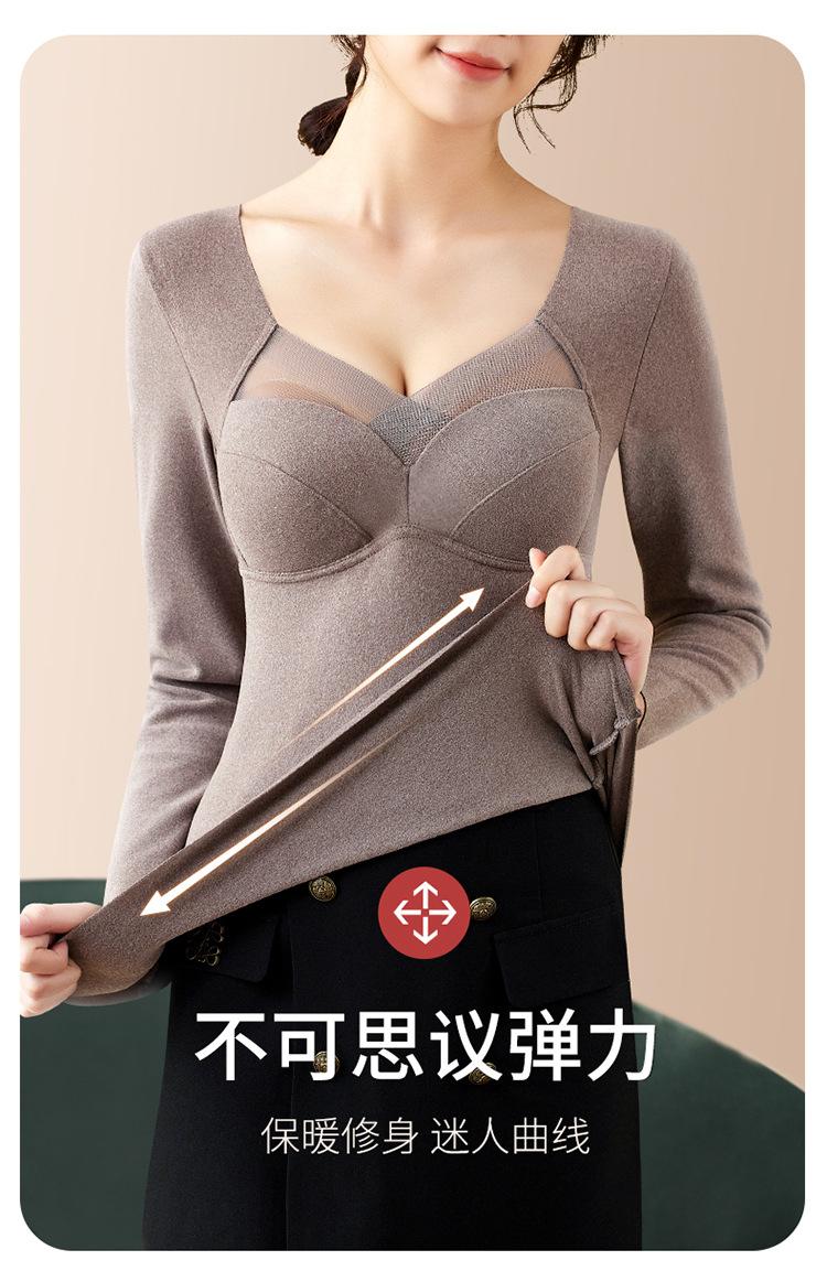 Com almofada no peito De veludo quente engrossado top com decote em V roupa íntima sem sutiã para mulheres outono e inverno camisa de base térmica sem costura para mulheres