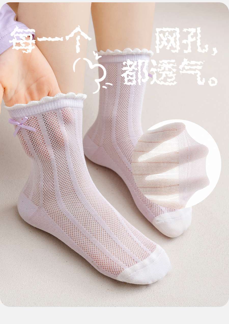 Meias para meninas Verão infantil Fino A Algodão Meias de malha respirável Meias infantis de verão para meninas Meias finas de renda para bebê