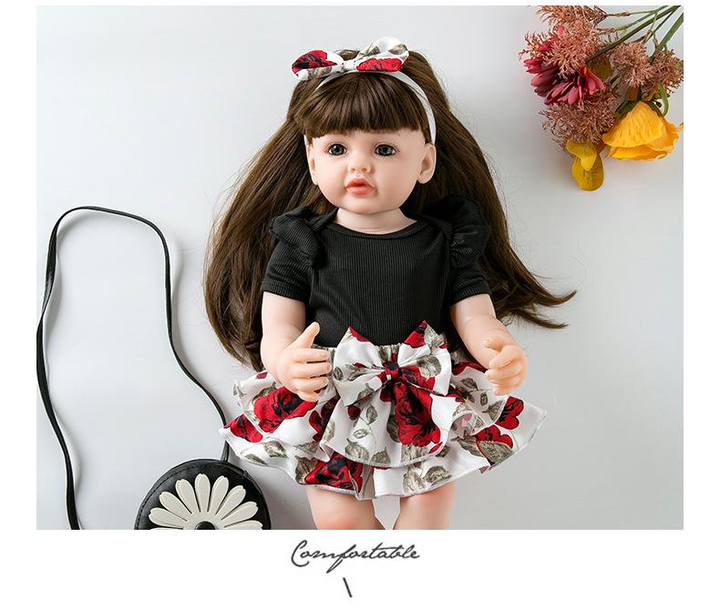 Nova 55cm simulação boneca roupas terno curto- manga comprida romper rosa shorts acessórios para o cabelo 3- peça reborn boneca roupas