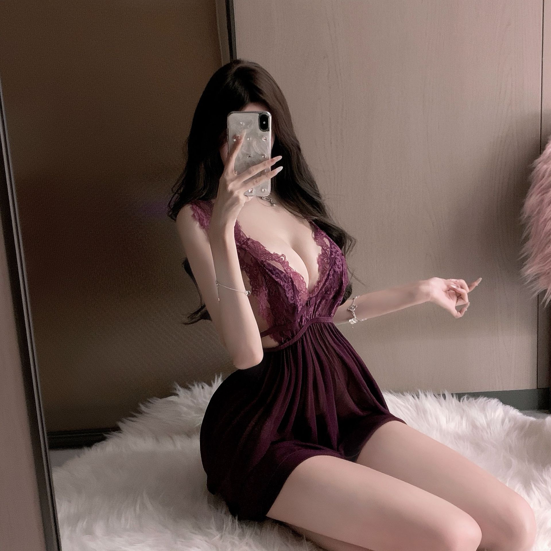 Lingerie sexy mulheres sexy costas fenda pijamas renda transparente quente tentação nightdress europeu e americano 1147
