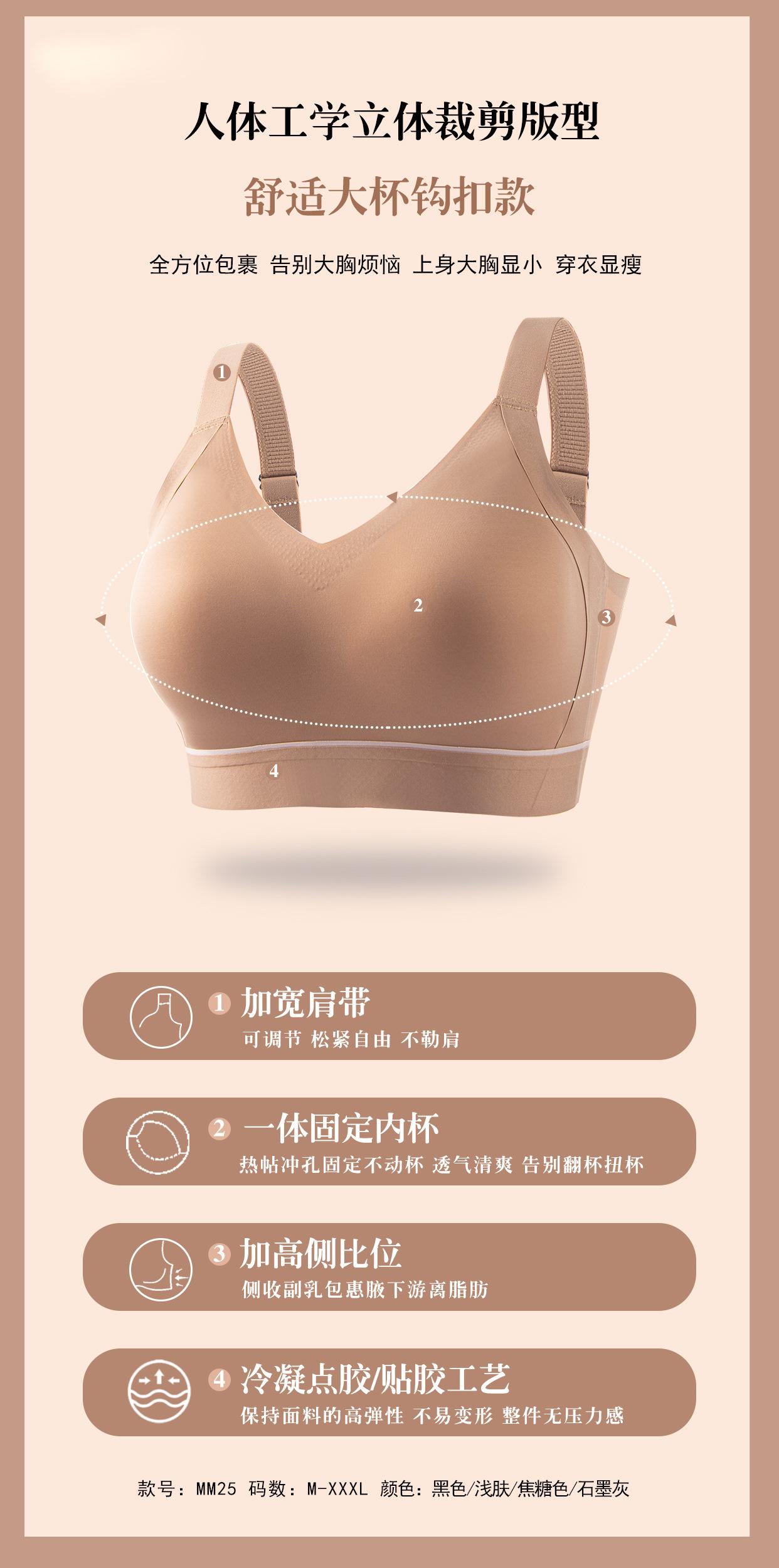 4. Formato confortável de taça grande, envolvimento total, diga adeus às preocupações de seios grandes, faz com que seios grandes pareçam menores e faz você parecer mais magra ao usar roupas