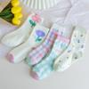 Meias Primavera e Outono Flor meias femininas meias fofas doces all-match meias de maré pastorais xadrez meias de algodão