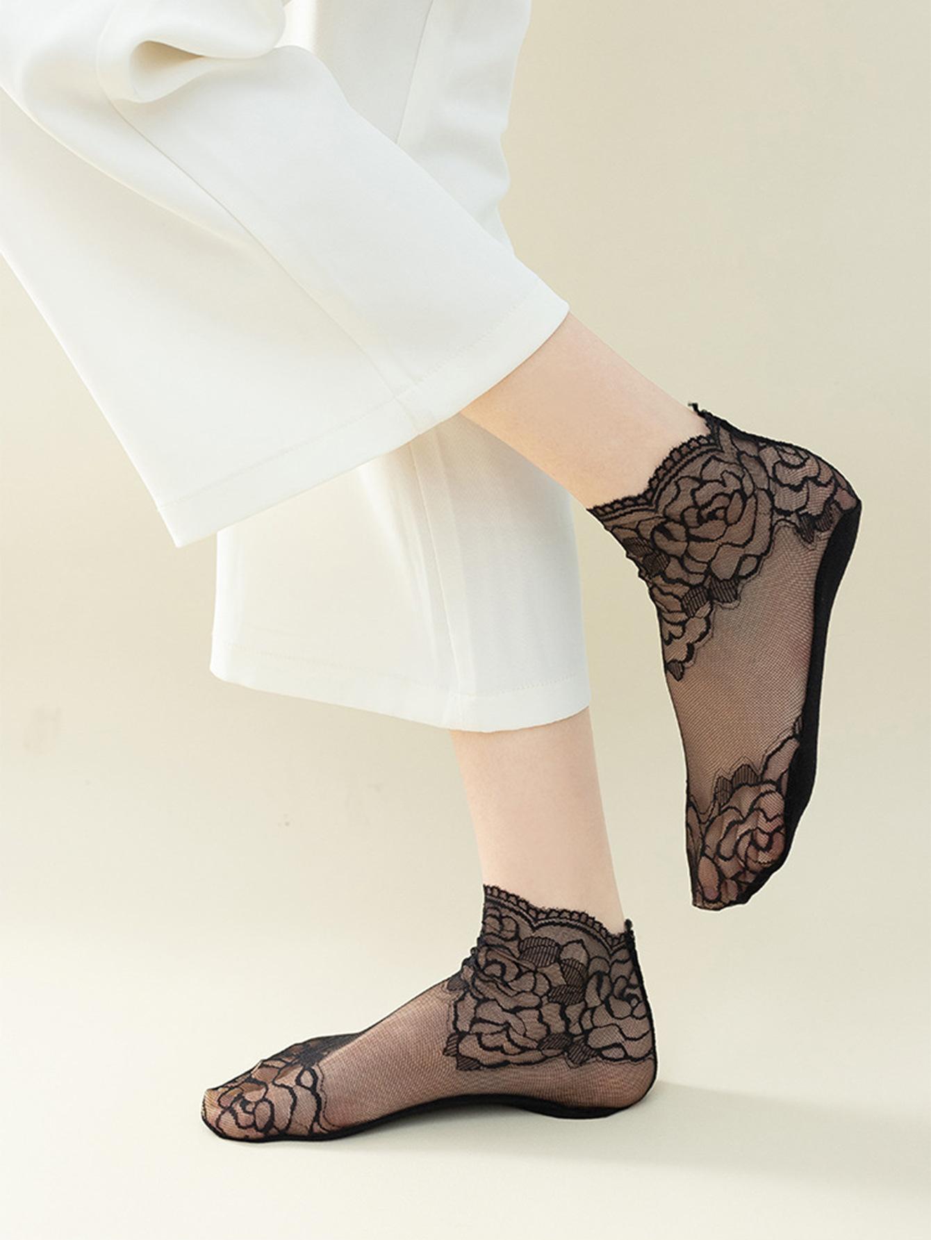 Meias de renda de algodão de verão finas respiráveis meias femininas de malha fina antiderrapante meias invisíveis dentro do comércio exterior atacado