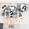 Long-sleeved cartoon patchwork sweater two-piece set gray