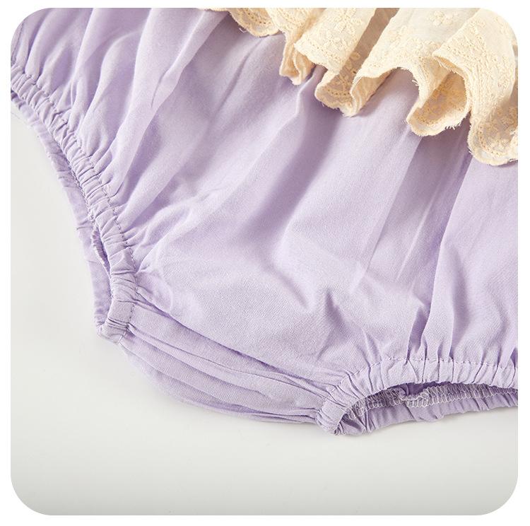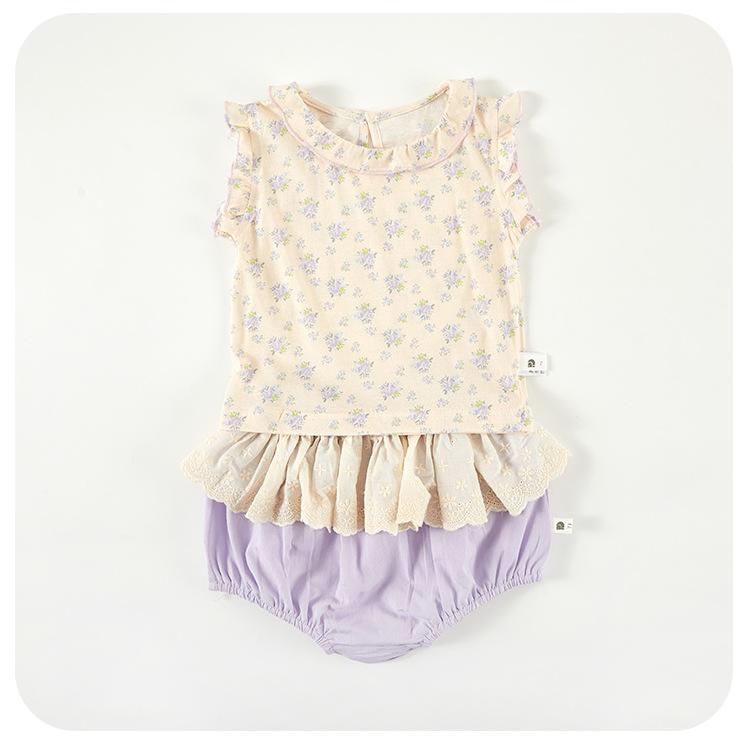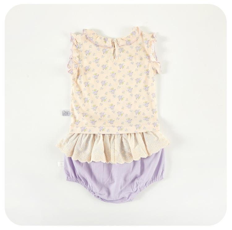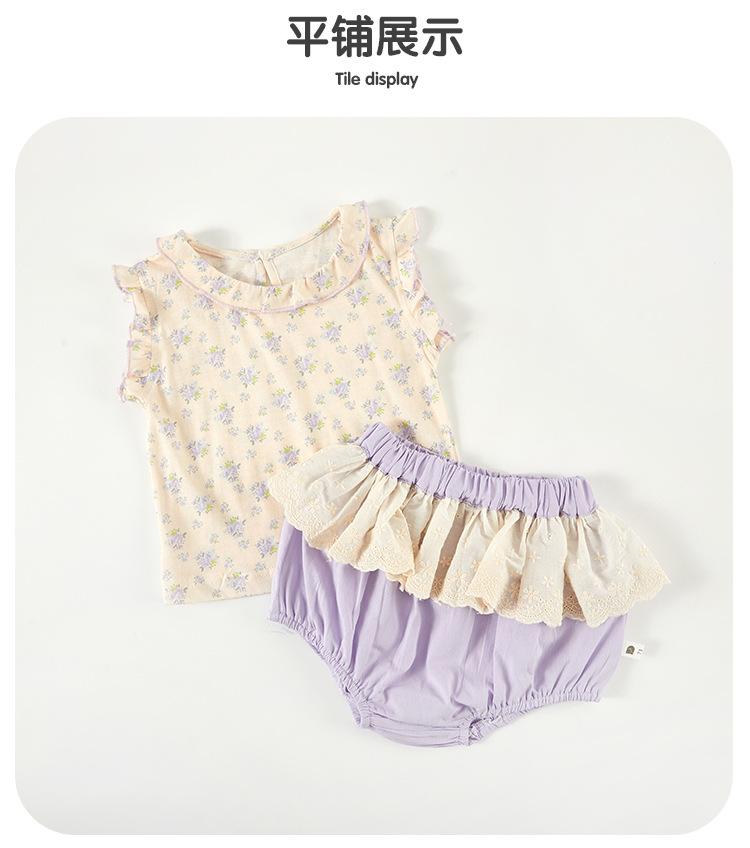 Conjunto Fino de Verão Infantil 2025 Blusa Fina de Manga Renda Calça Floral Triangular Conjunto de Duas Peças Roupa de Bebê