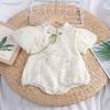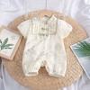 Bebê manga curta uma peça de roupas verão puro algodão verão usar fino ar-condicionado pijamas recém-nascido bebê menina chapéu roupas de escalada
