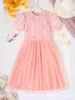 Novo Vestido Infantil 2025 Vestido de Princesa com Flores para Meninas Verão Roupas Infantis Moda Saia de Tule para Menininha