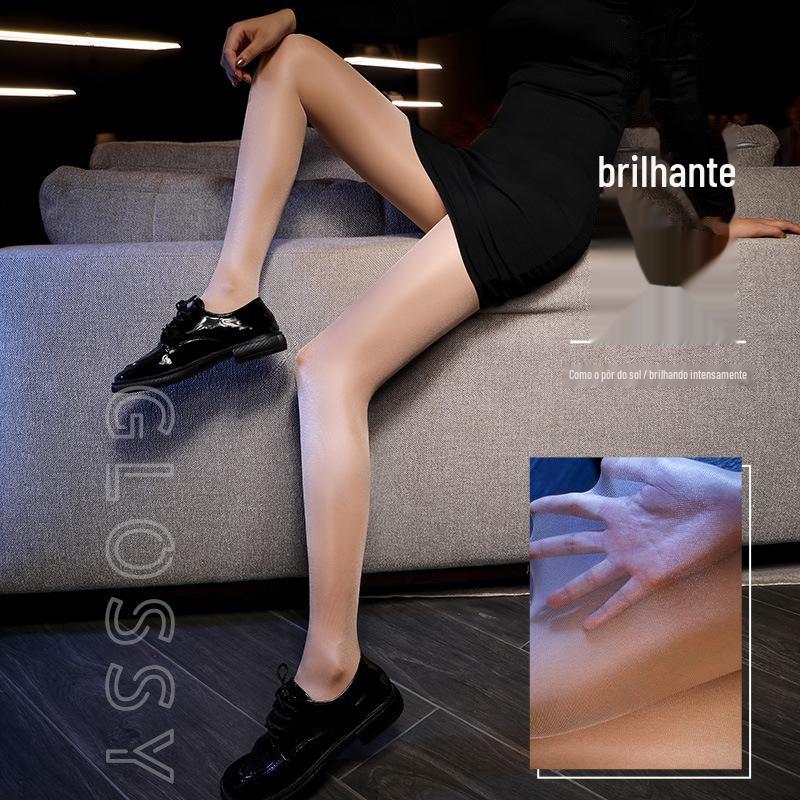 Meias de seda primavera fina óleo de pérola das mulheres meias brilhantes ultra-fino anti-gancho seda alta meias elástica virilha fabricantes atacado