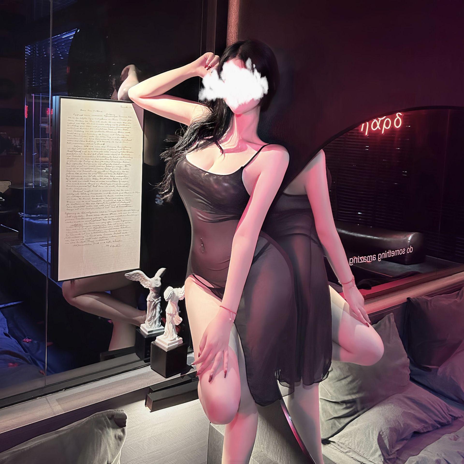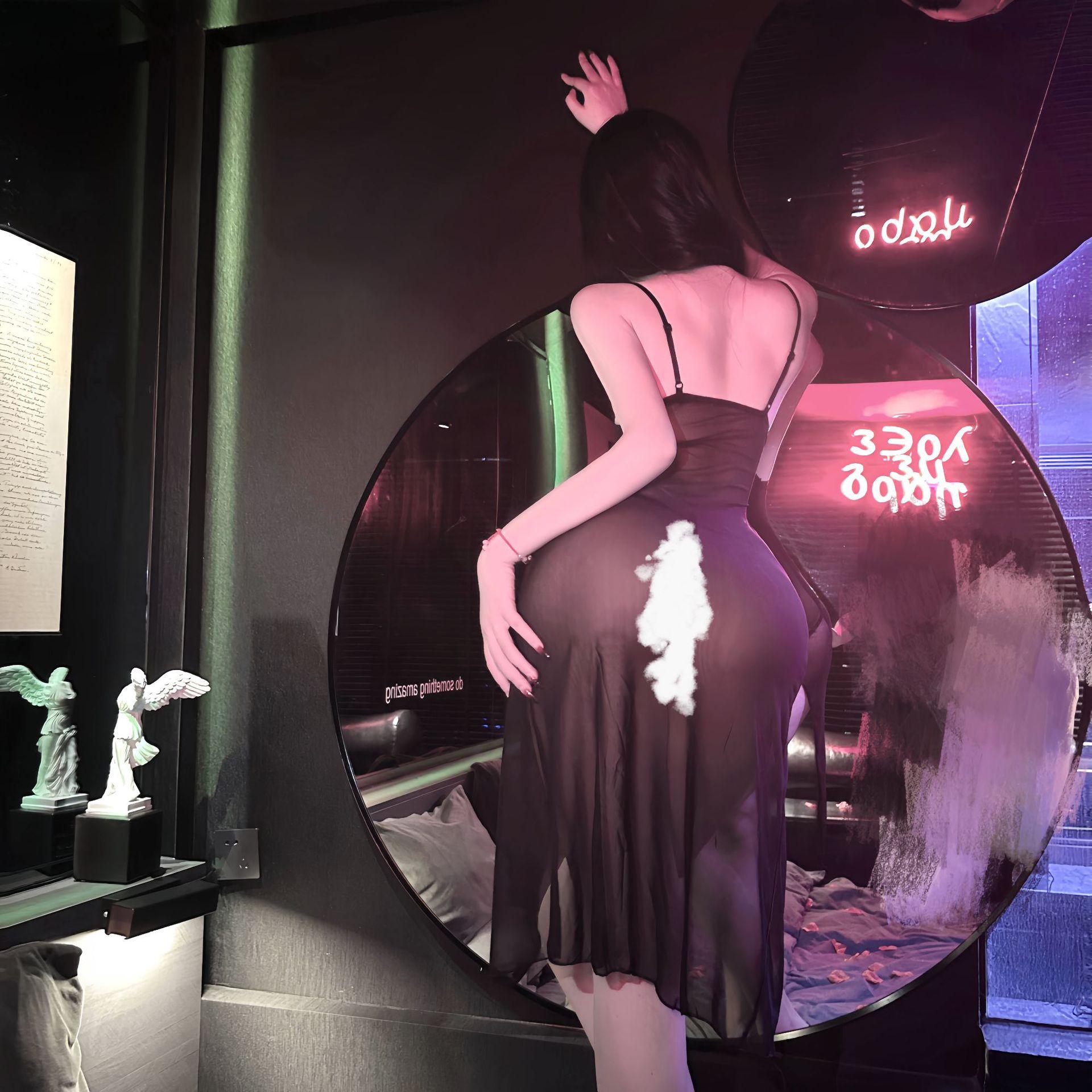 Lingerie sexy semi-transparente sexy alta fenda malha renda alça vestido de noite vestido cueca casa novo terno