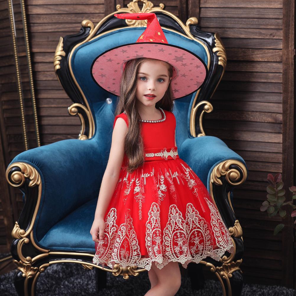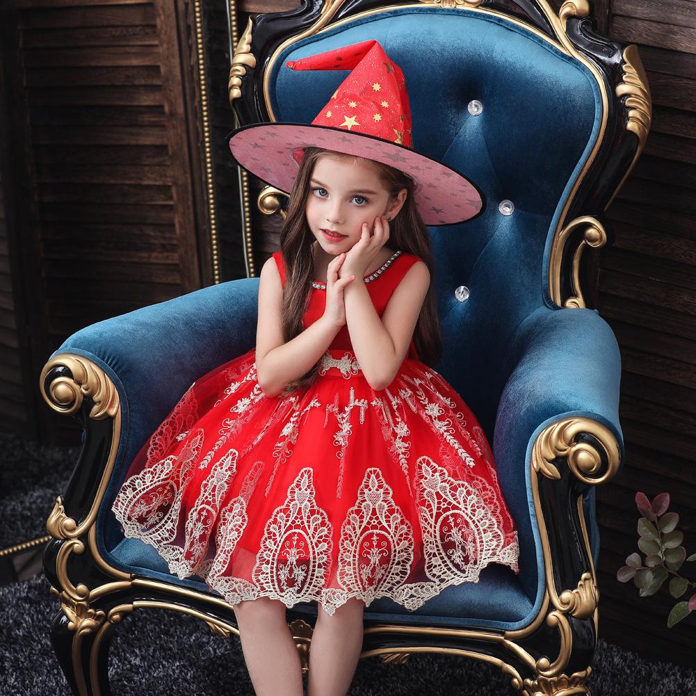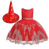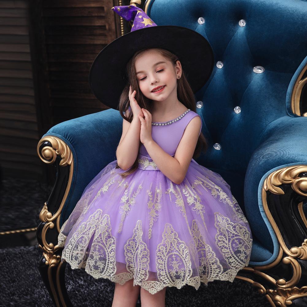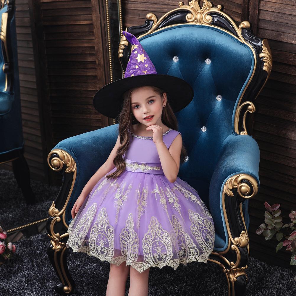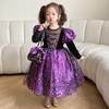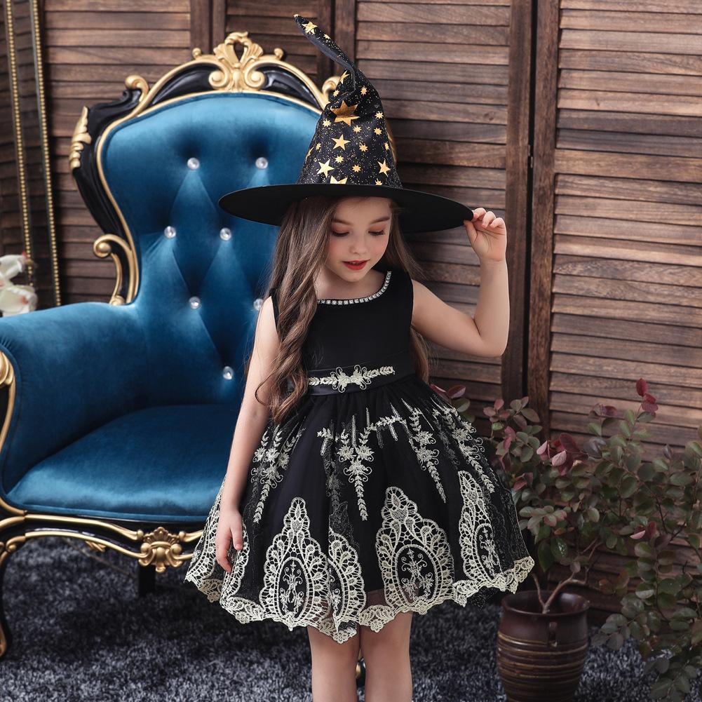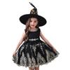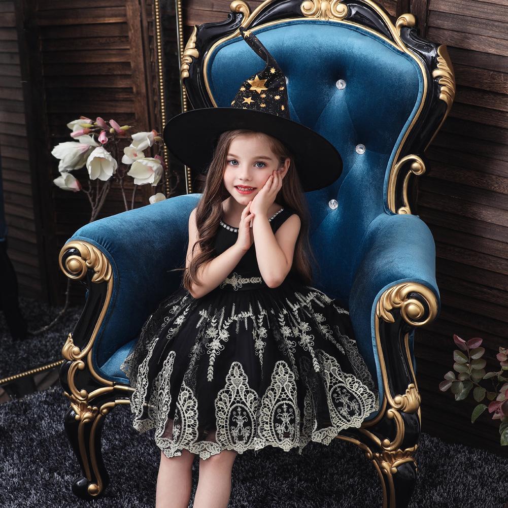 Vestido de Halloween Europeu e Americano Vestido Infantil Cosplay Bruxa Negra Vestido de Desempenho Vestido de Princesa Vestido de Malha Bolsa