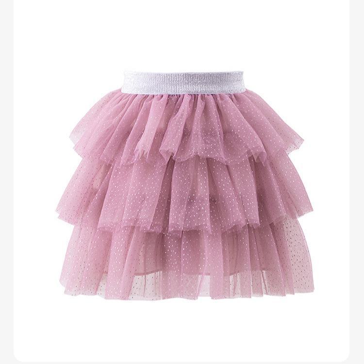 Saia de Bolo das Meninas 2024 Novo Estilo Estiloso Internet Popular Saia de Princesa das Crianças Doce Meio Comprimento Saia de Malha