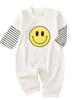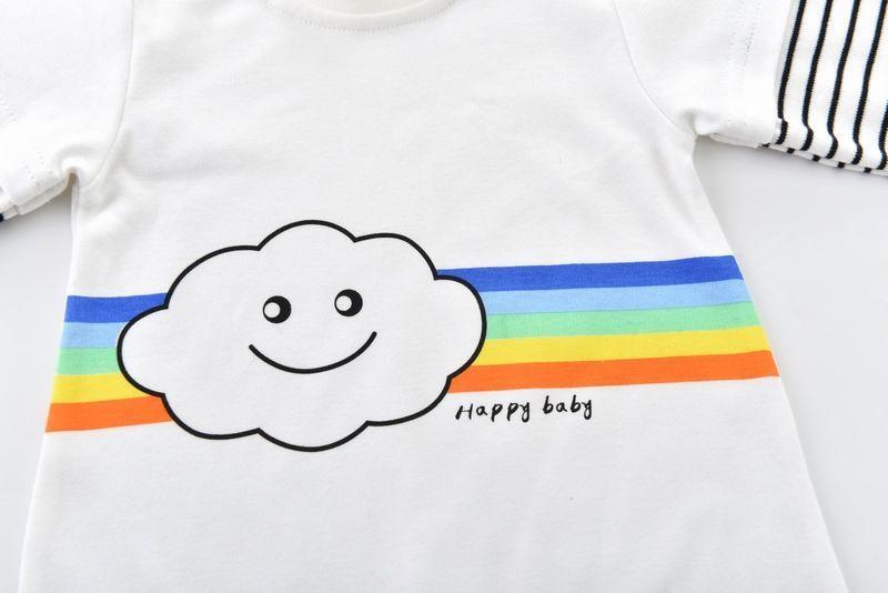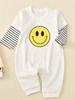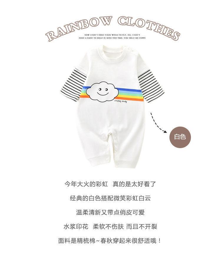 Roupa de Outono para Bebê Algodão Puro Macacão de Manga Comprida Lua Cheia 100 Dias Macacão de Emenda para Bebê Masculino e Feminino Listras