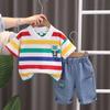 Terno de verão para meninos 2024 Novo estilo ocidental Desgaste de verão do bebê fino e bonito de manga curta de duas peças roupas da moda