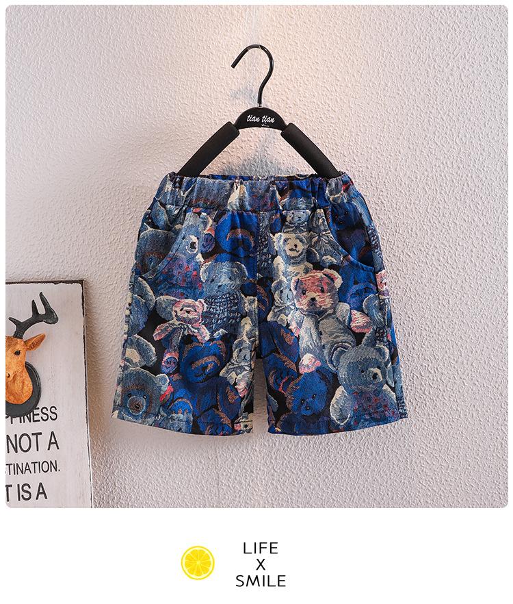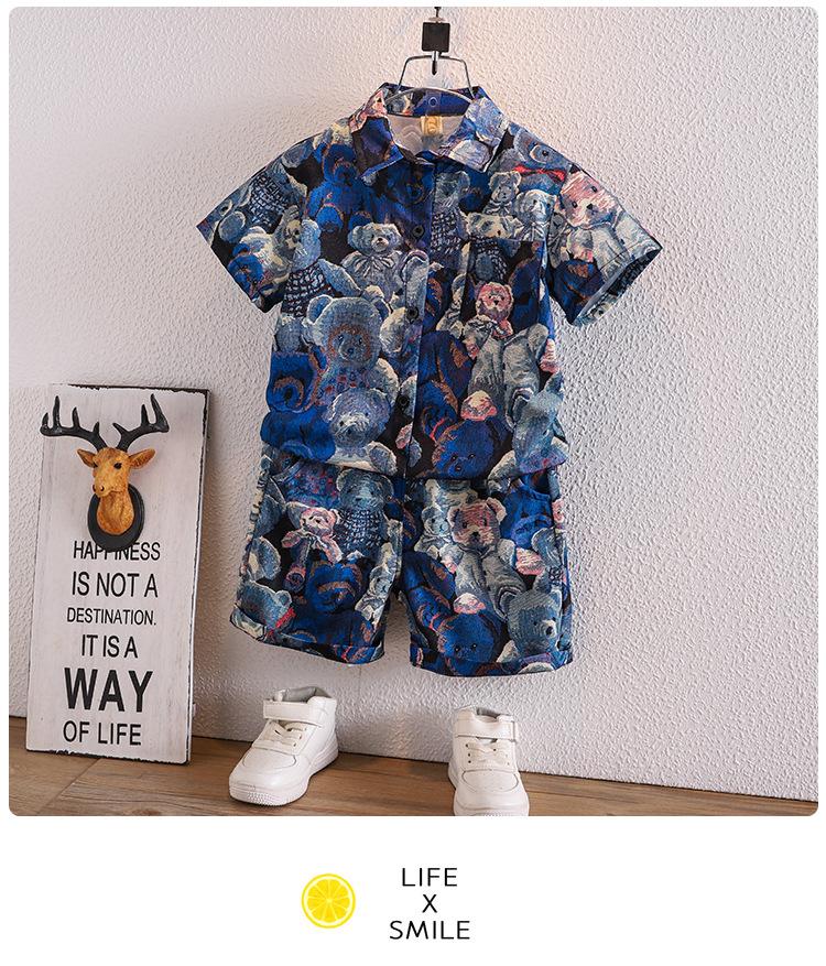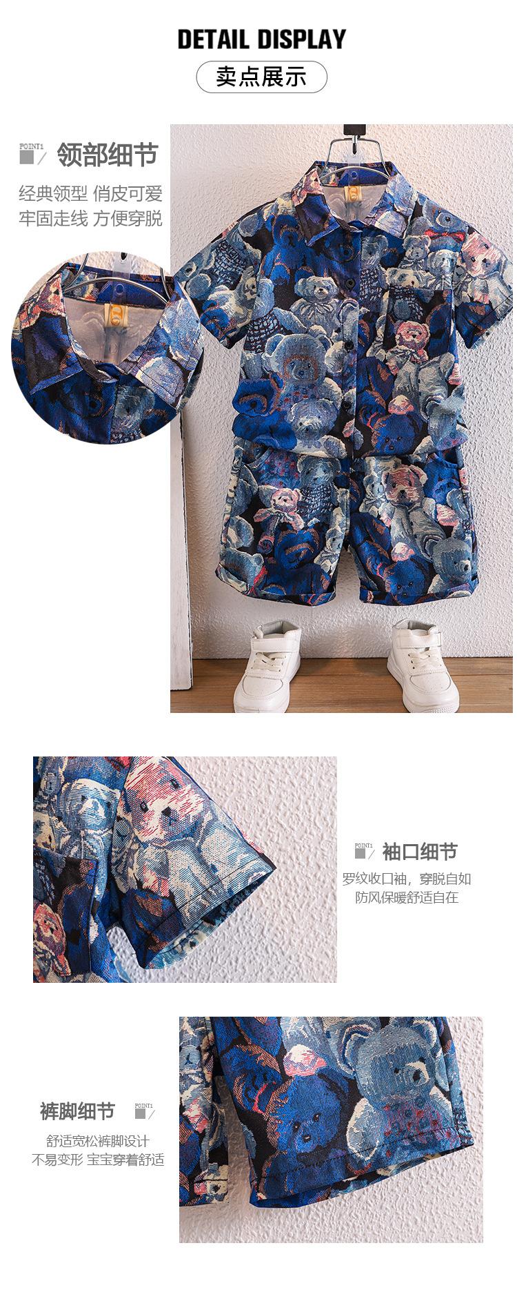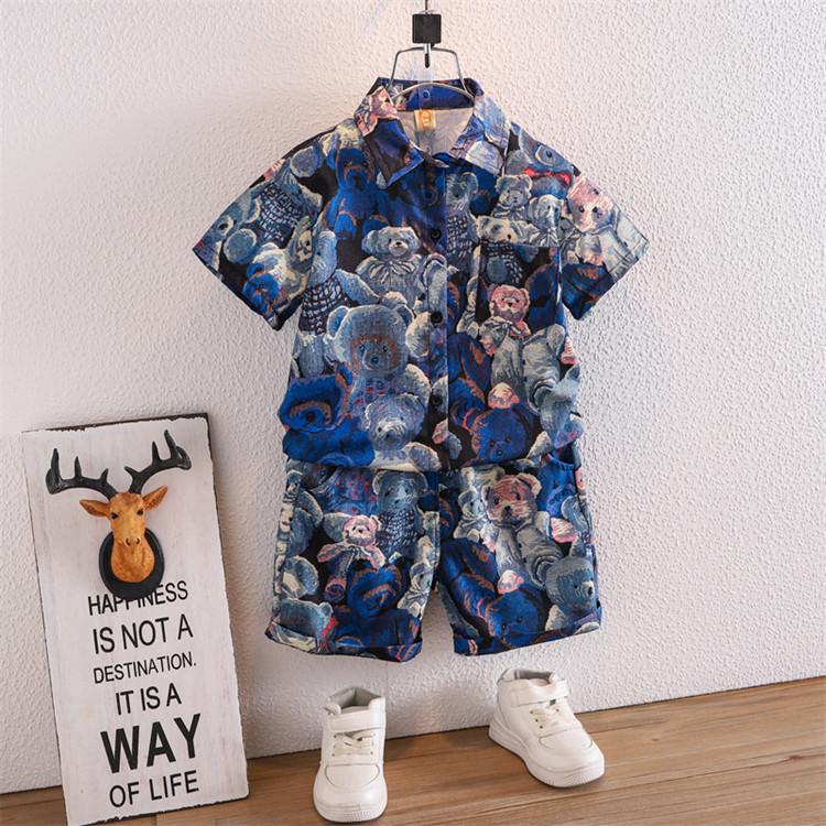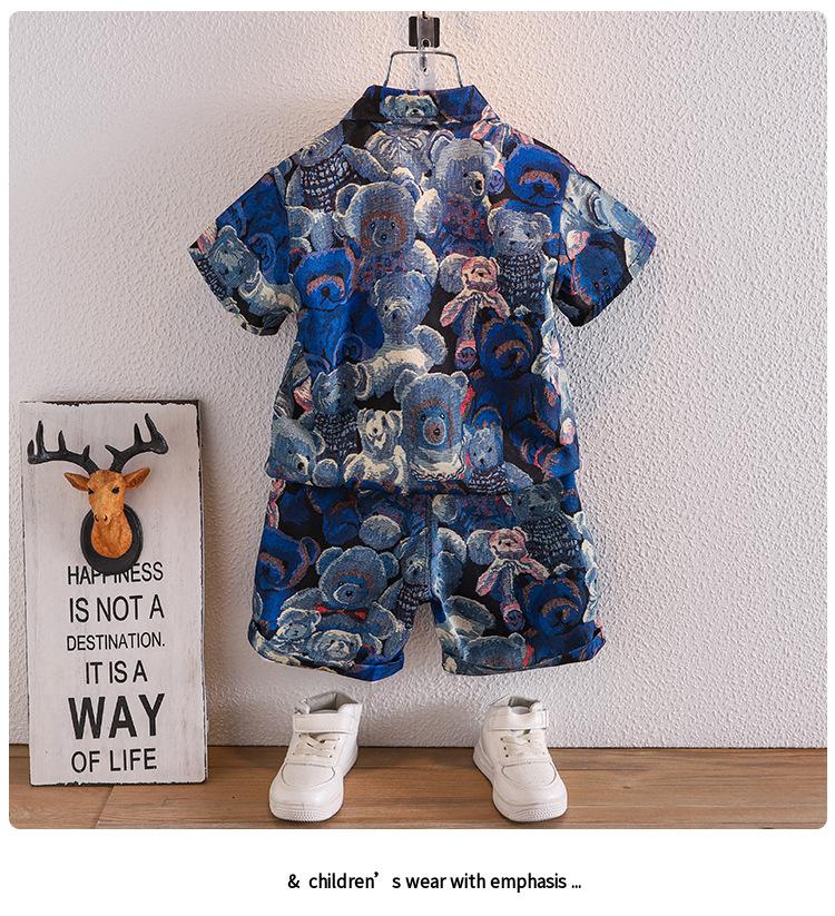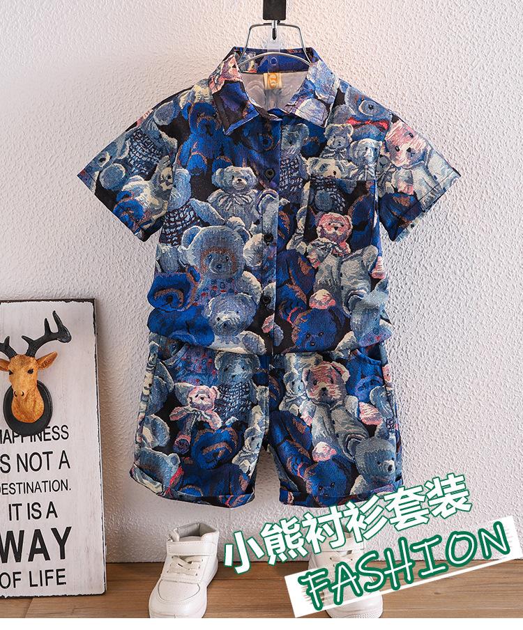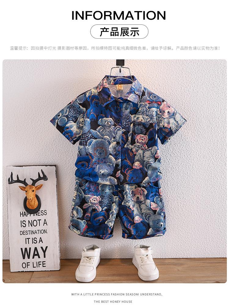 Meninos Urso Camisa terno 2024 Verão Nova Camisa de manga curta infantil Conjunto de duas peças Infantil Casual Roupas infantis