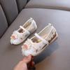 Sapatos bordados hanfu para meninas, sapatos de pano antigos de pequim, estilo étnico, traje antigo, sapatos bordados, sola de tendão, sapatos de dança para crianças, sapatos infantis
