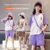 Roupas infantis femininas 2025 verão novo bebê menina moda listrado terno infantil laço manga curta camiseta shorts