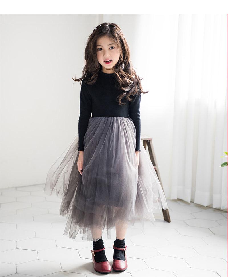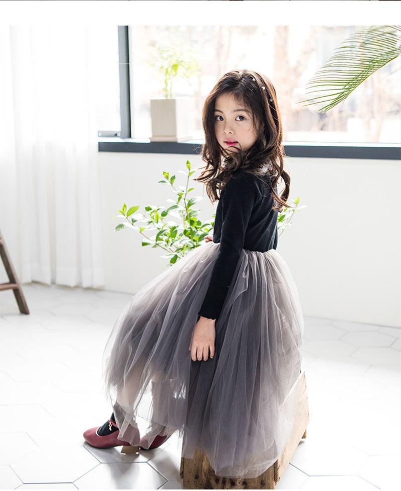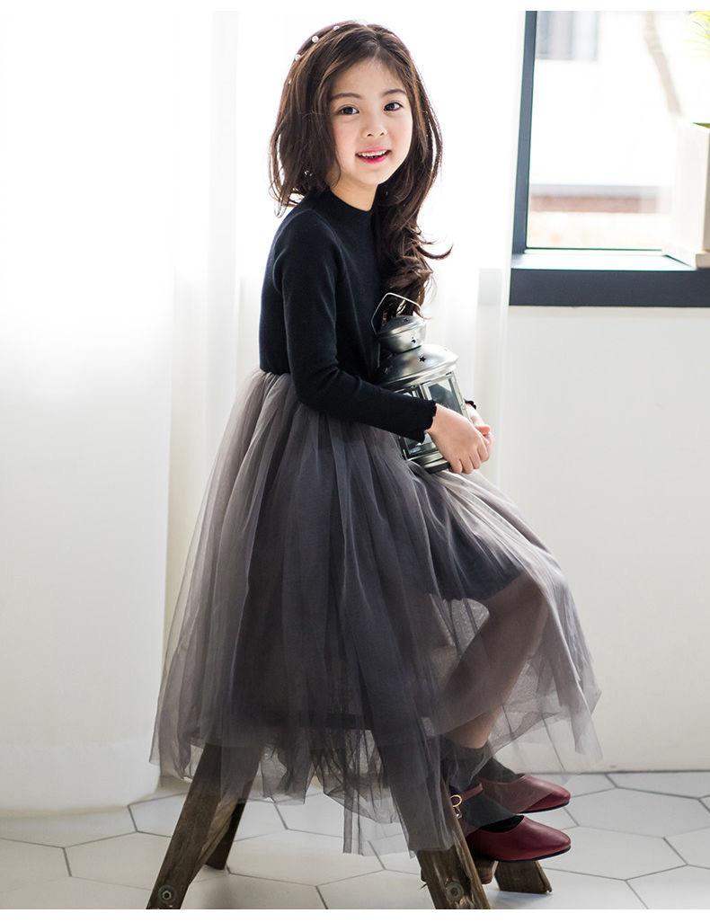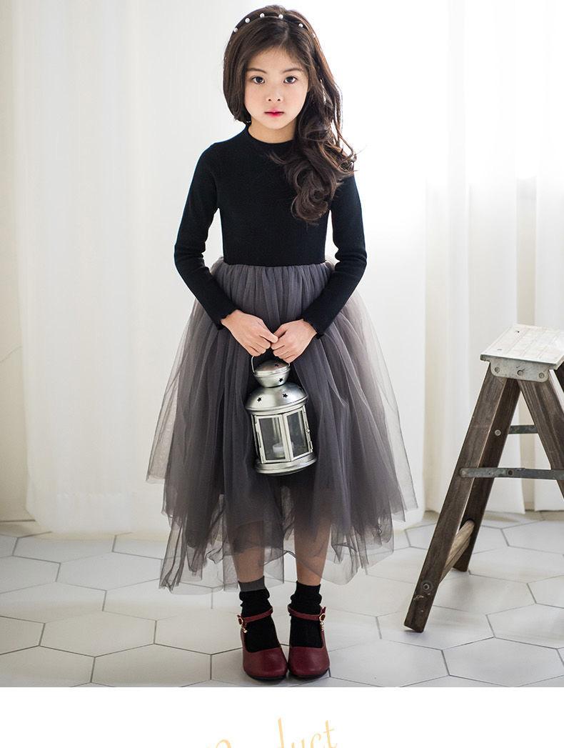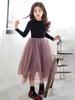 Vestido Infantil Médio e Grande 2025 Estilo Coreano Saia Tutu Infantil Meninas Outono Roupa Infantil Performance Renda Vestido de Princesa