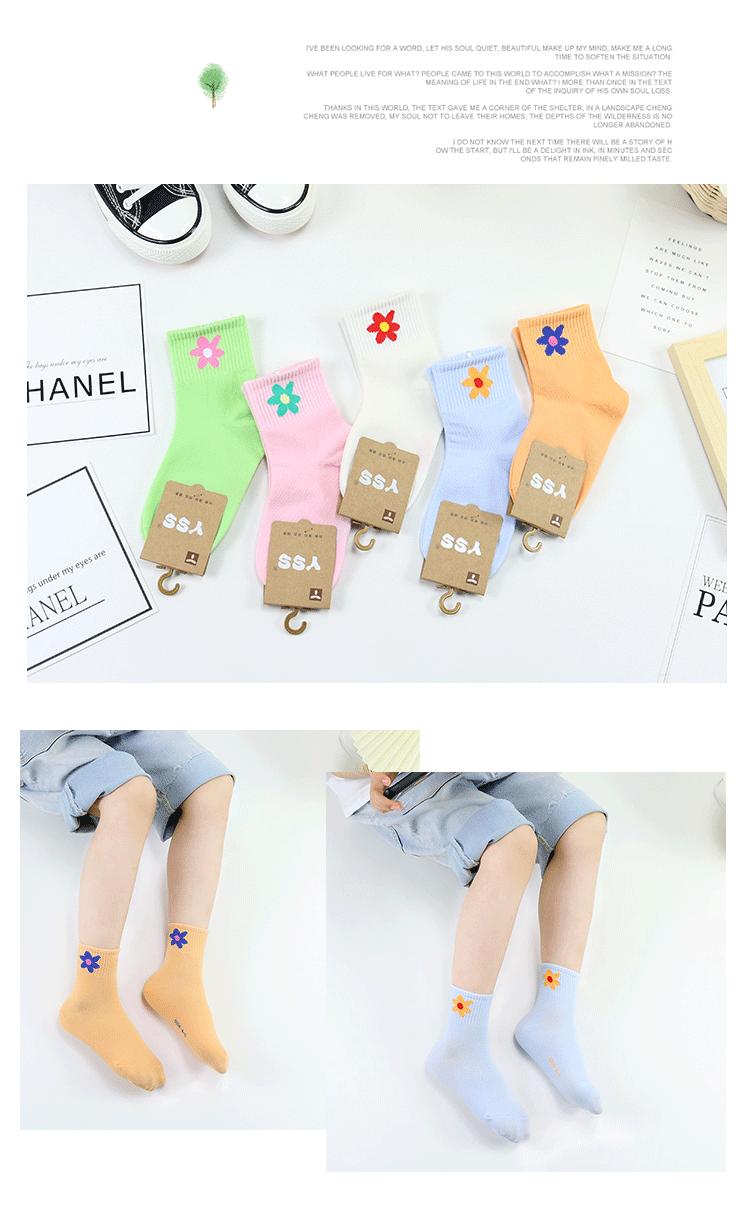 Meias infantis Yi Pair Outono e Inverno Novo Desenho Animado Pequena Flor Meias de Comprimento Médio Algodão Penteado Meninas Meias de Bebê ins Meias da Moda