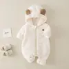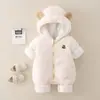 | Macacão infantil e para bebês outono/inverno 2025 novo estilo forrado com lã e espessado super fofo para menina inverno quente roupa de exterior |