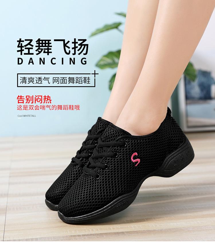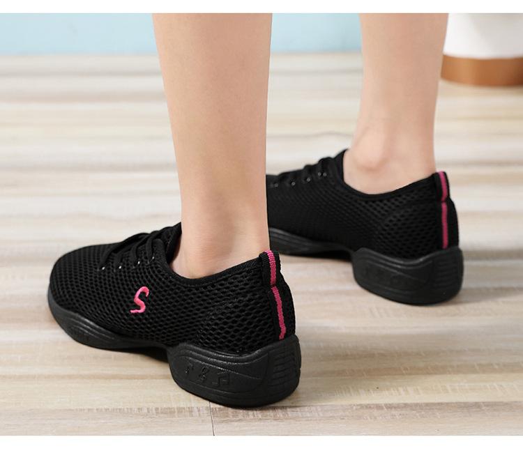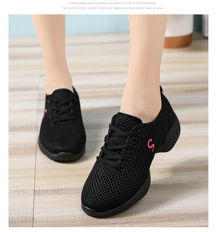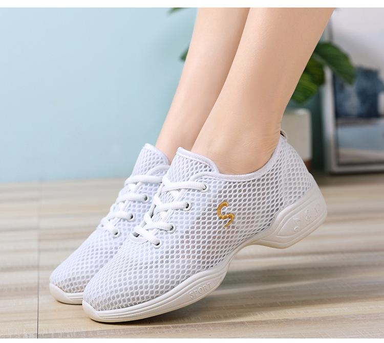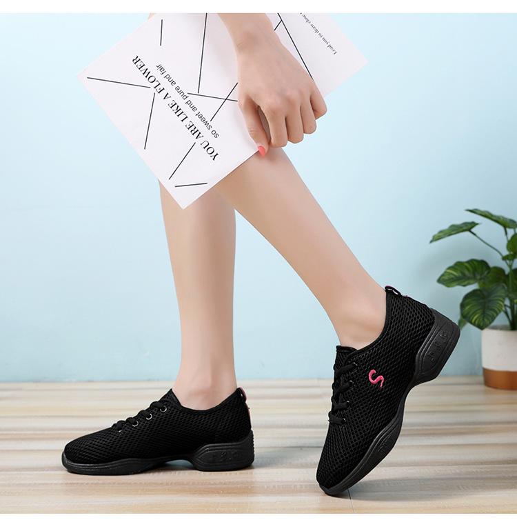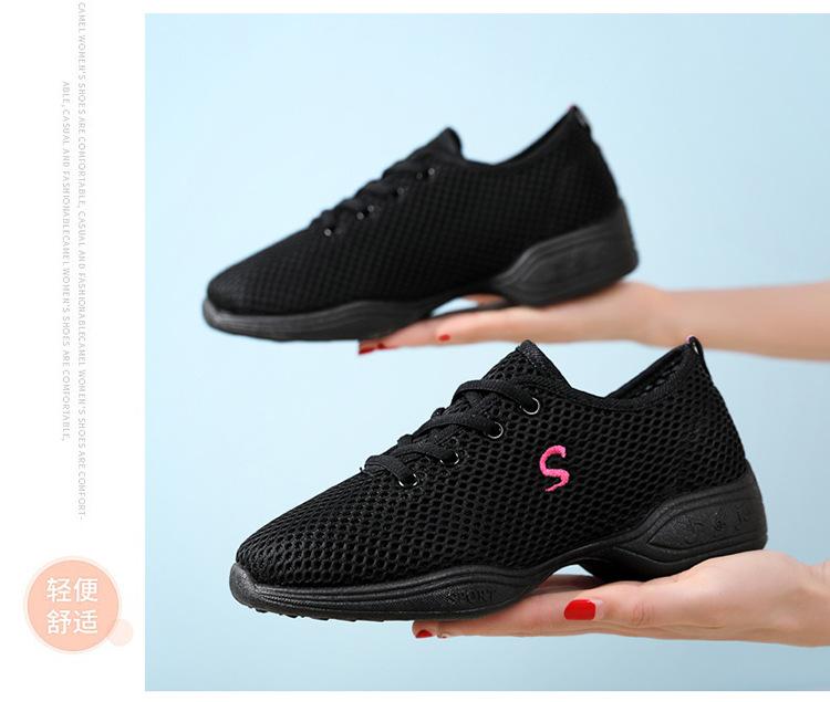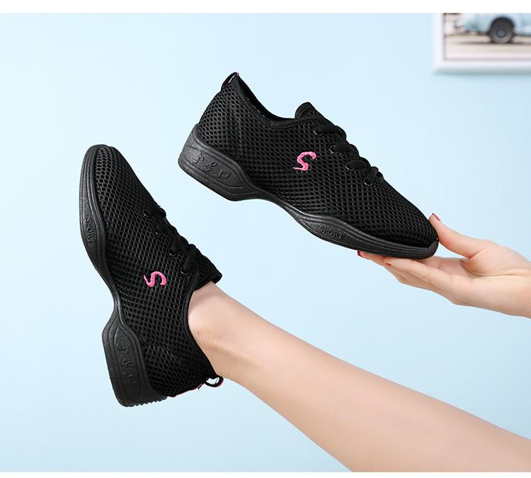 Sapatos de dança femininos de malha respirável para dança quadrada, sapatos de dança para adultos com sola macia, sapatos esportivos de jazz Sunderman para verão