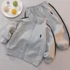 Terno de outono para meninos 2022 Primavera e outono Novo moletom com capuz estilo coreano infantil Calça de moletom Conjunto casual de duas peças para meninos