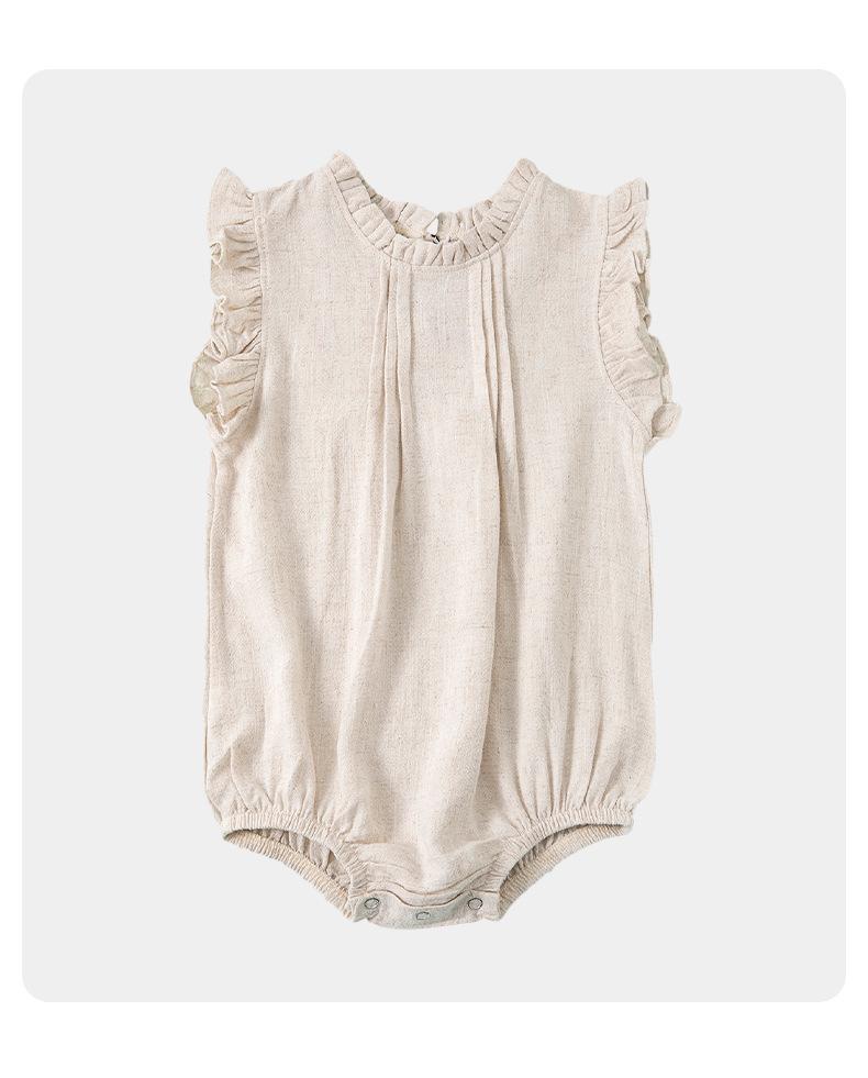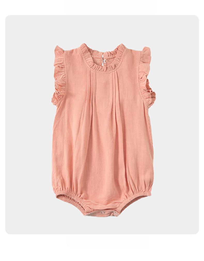 Ins Amazon Explosions Cross-border Baby Jumbo Novas roupas de escalada de cor sólida Linho Respirável Roupas de bebê femininas