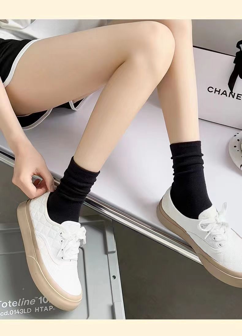Meias de pilha branca de primavera e verão meias de desodorante finas de panturrilha média das mulheres meias sem osso meias de confinamento