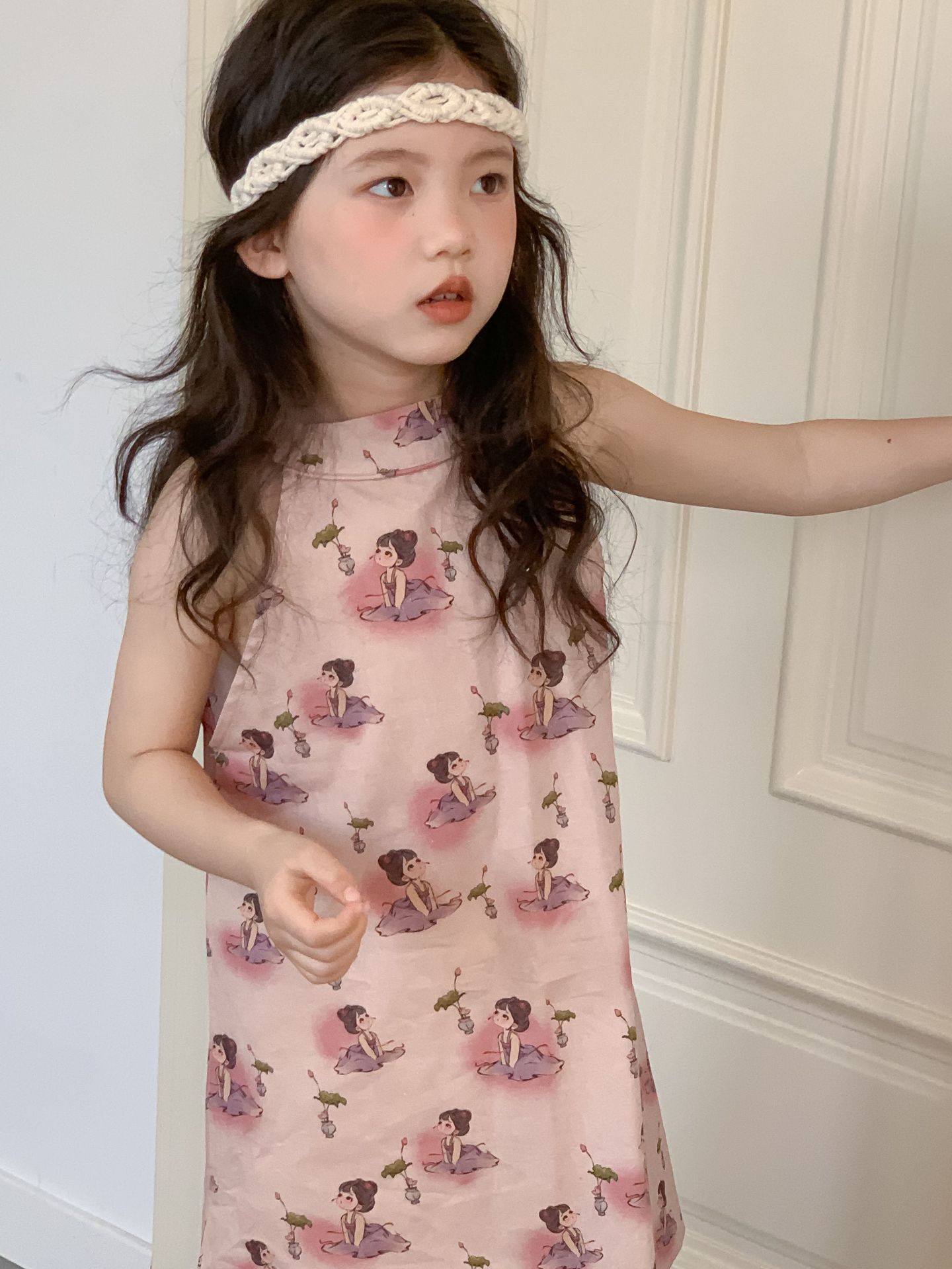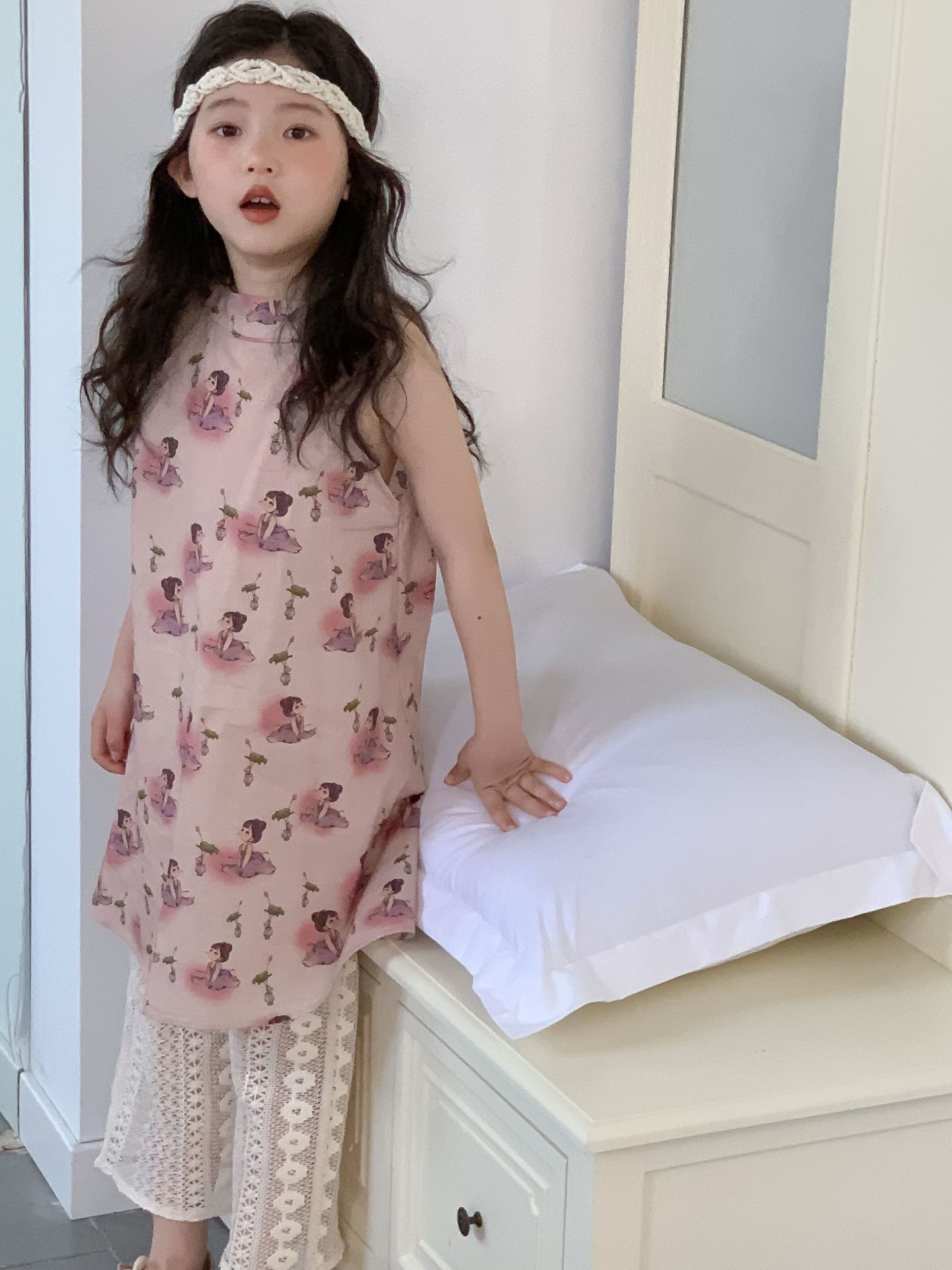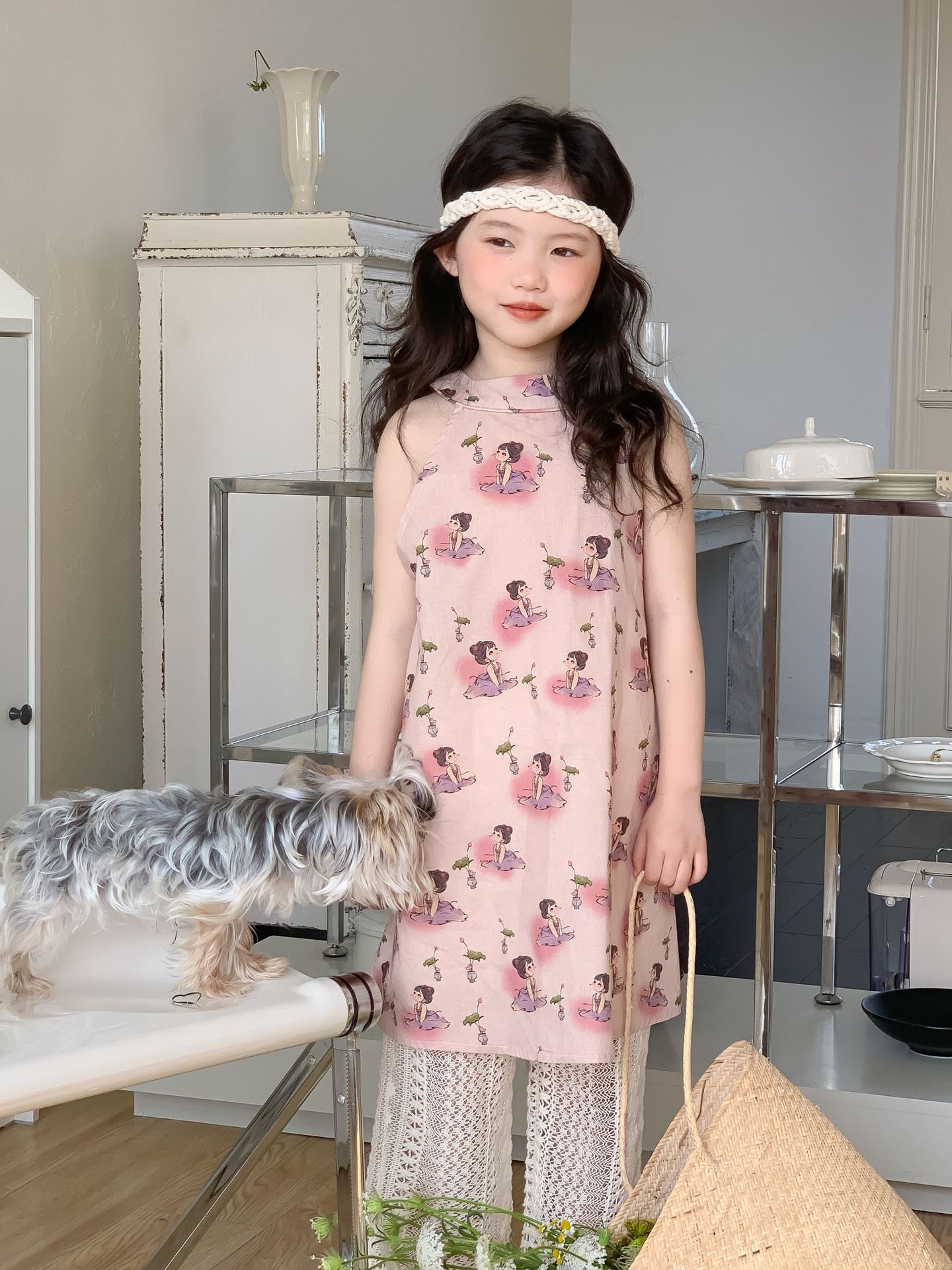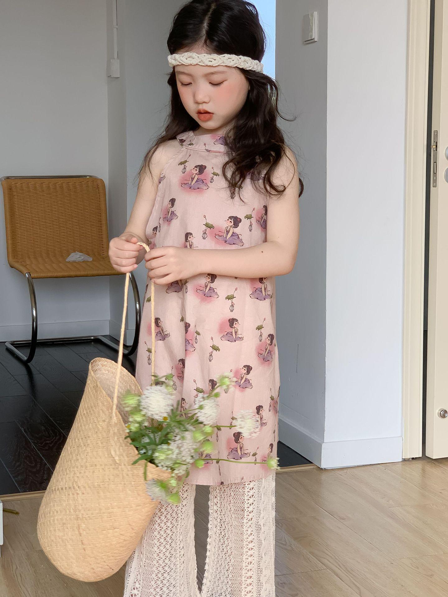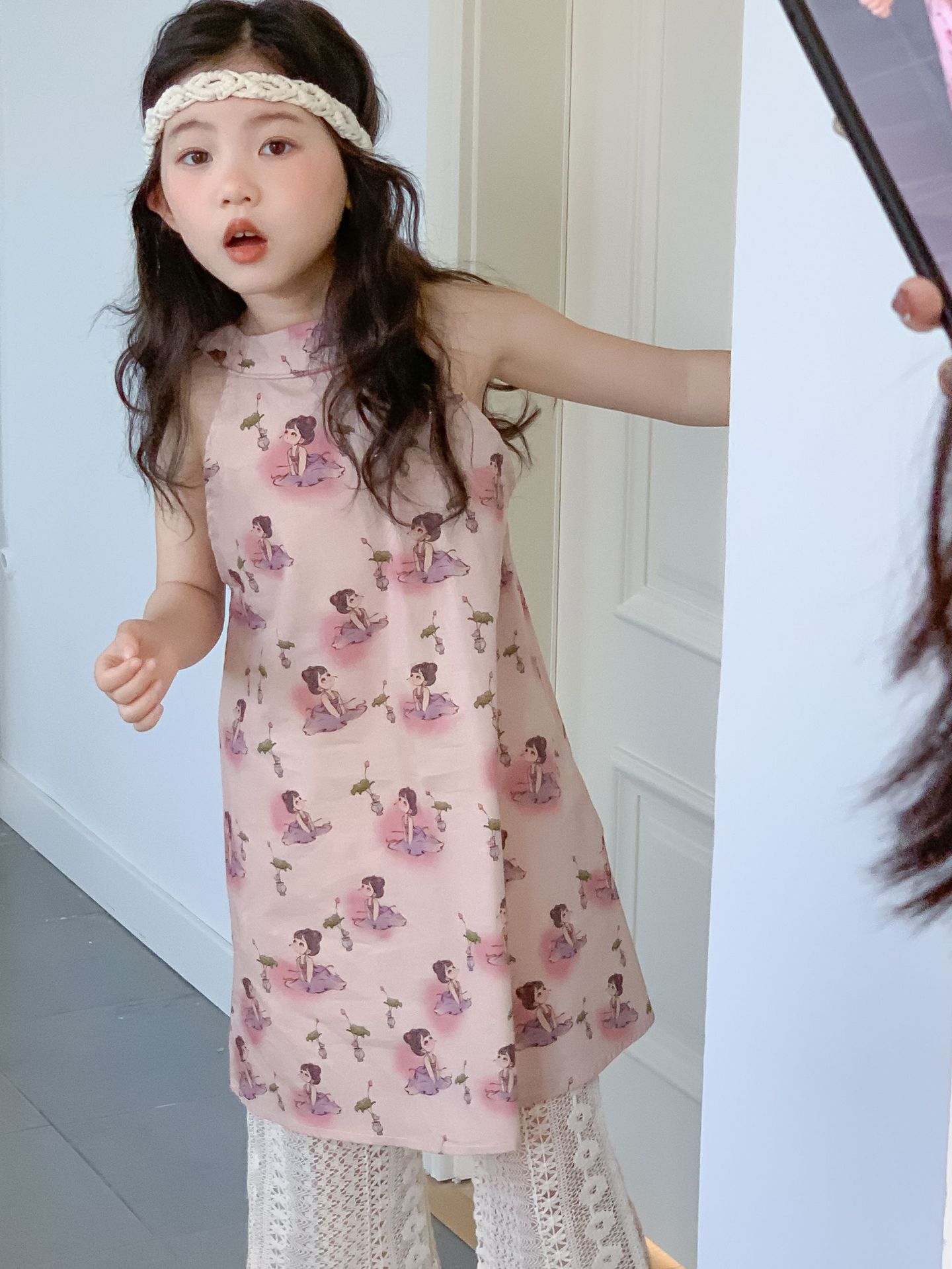 Roupas infantis 2025 Verão Novo Meninas Estilo Chinês Cheongsam Grande Infantil Menina Tesouro Vestido Sem Mangas Saia Infantil