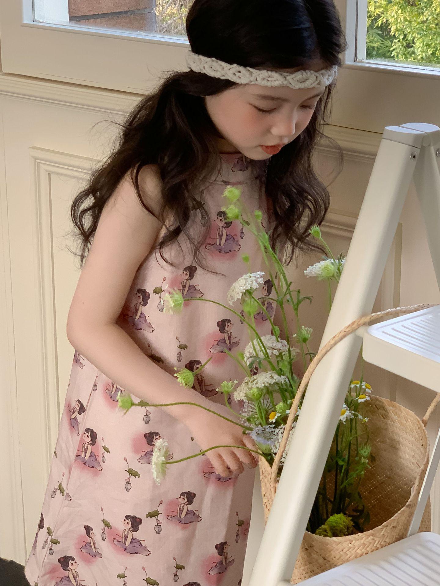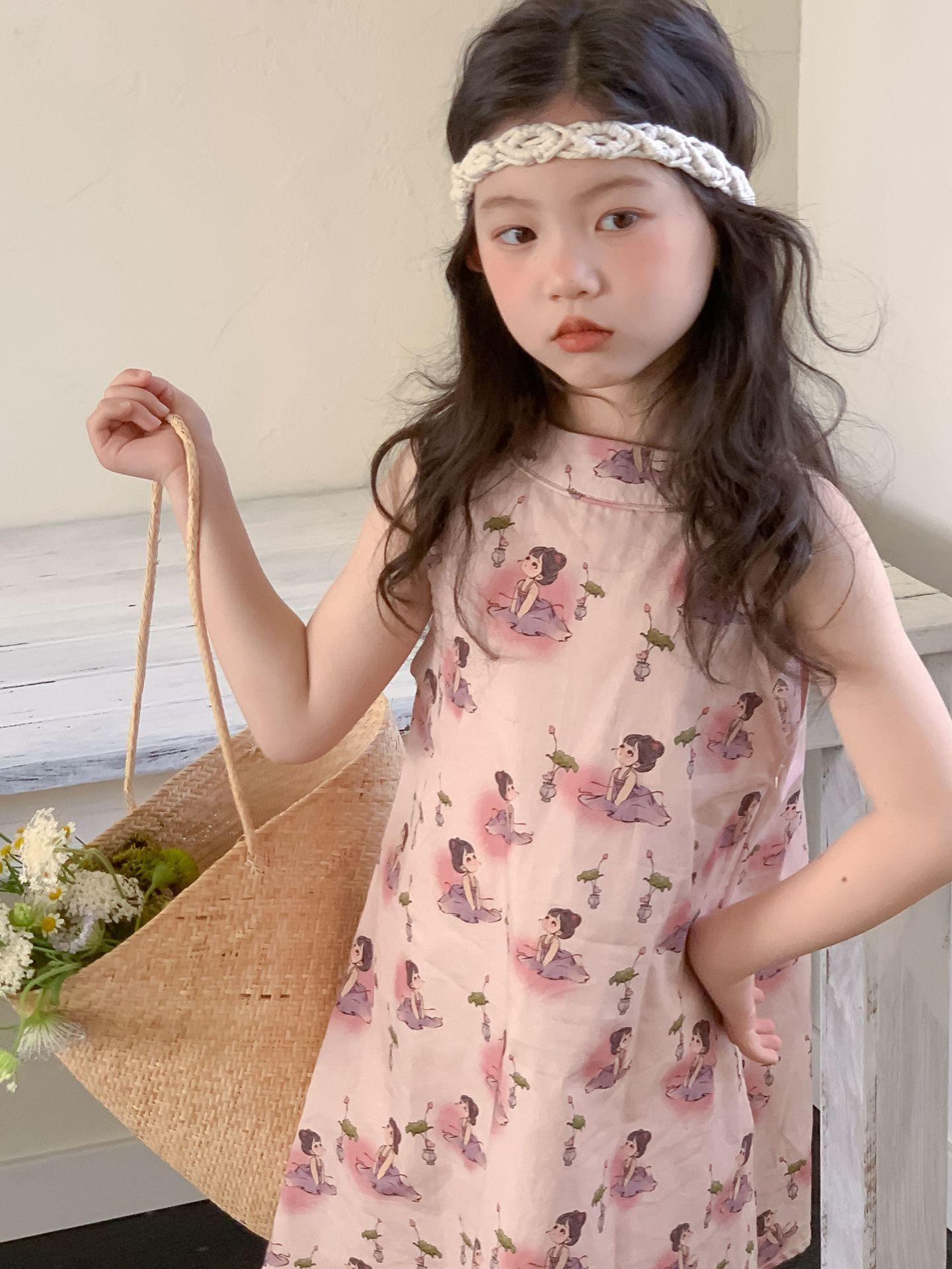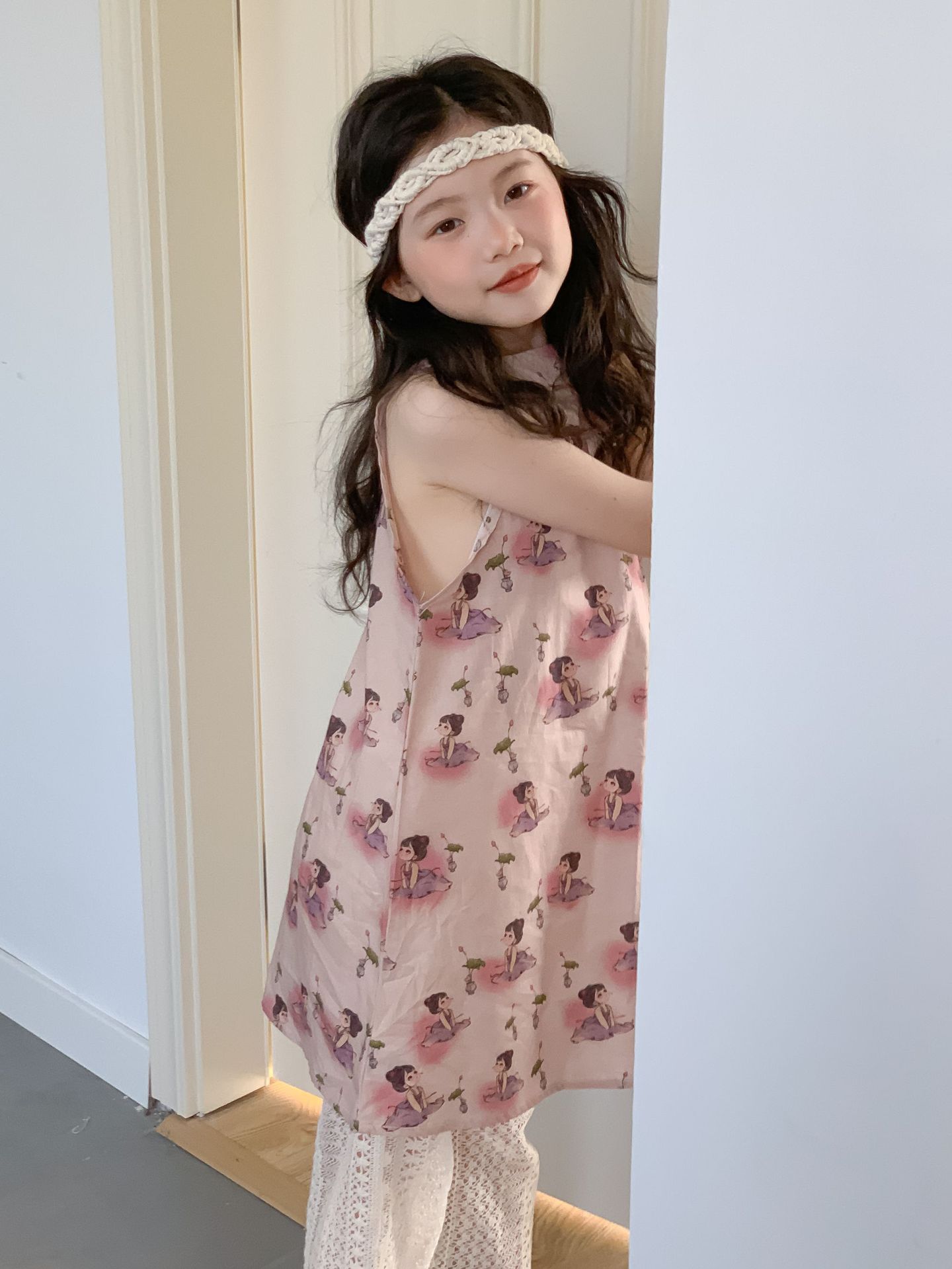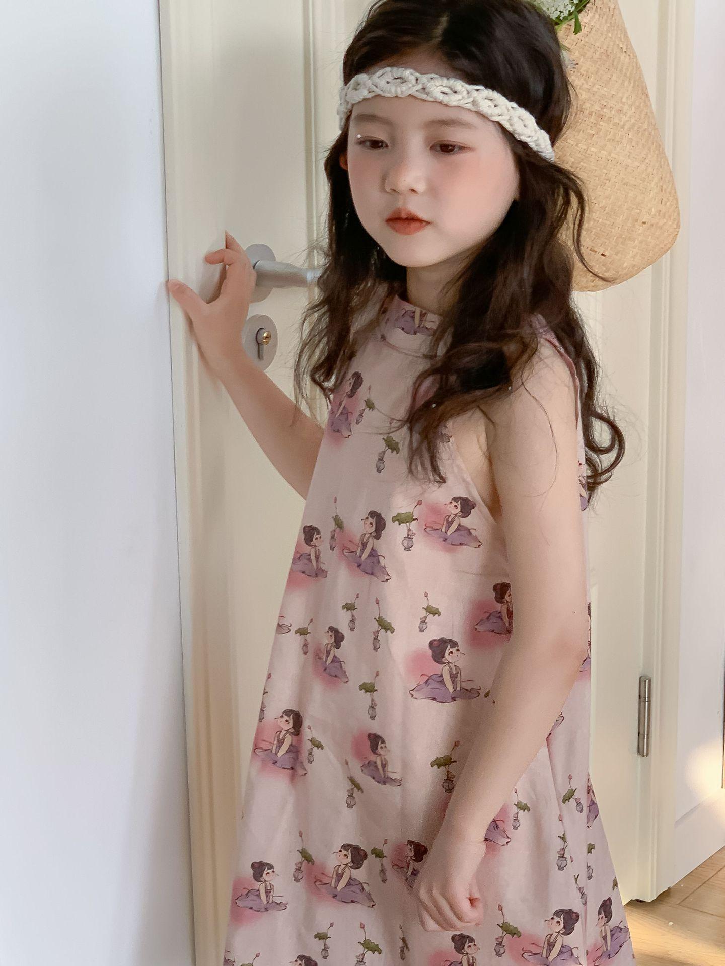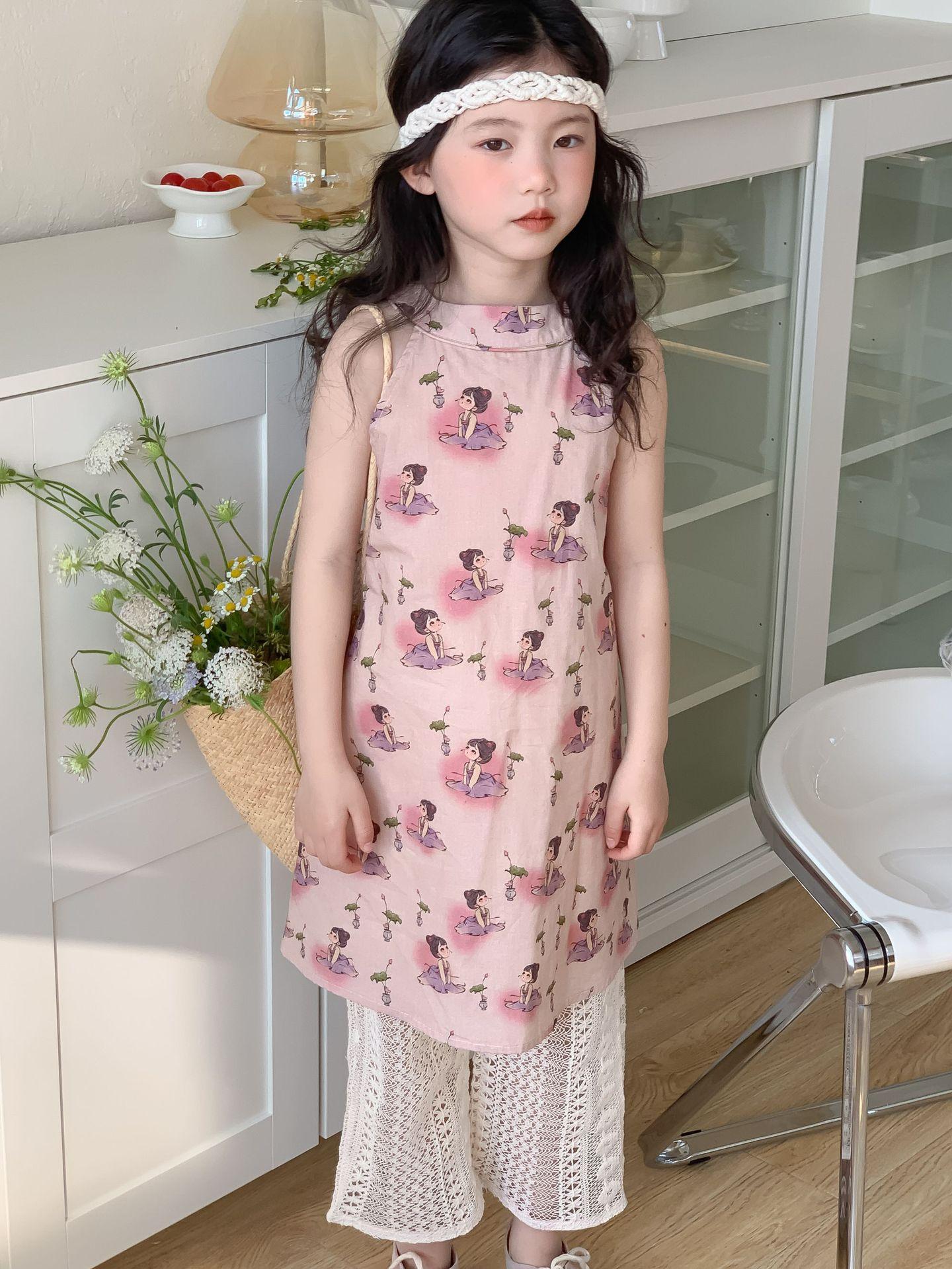 Roupas infantis 2025 Verão Novo Meninas Estilo Chinês Cheongsam Grande Infantil Menina Tesouro Vestido Sem Mangas Saia Infantil