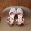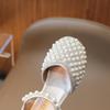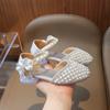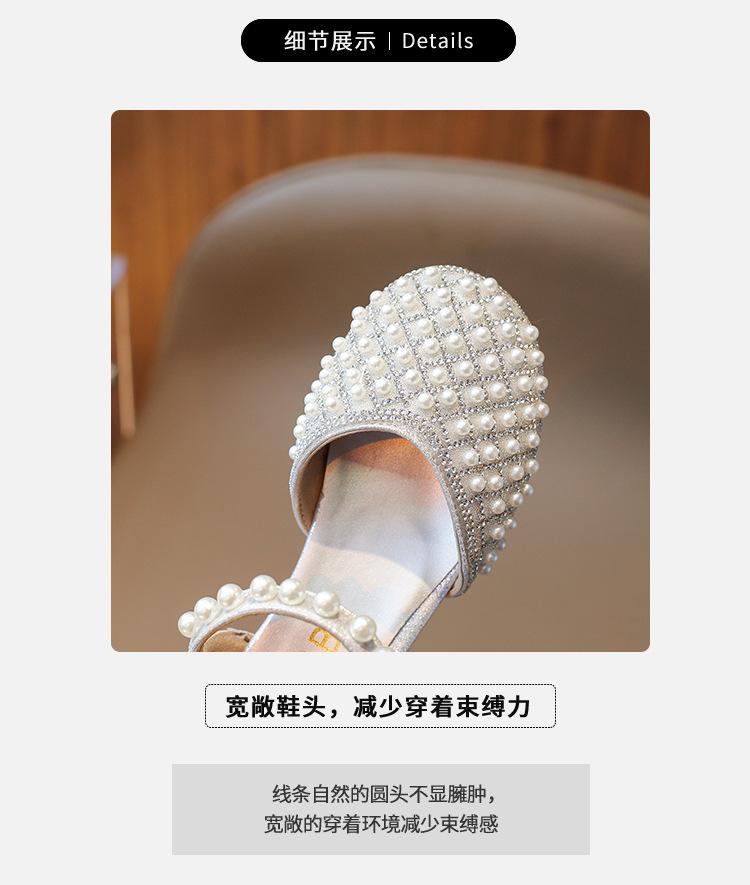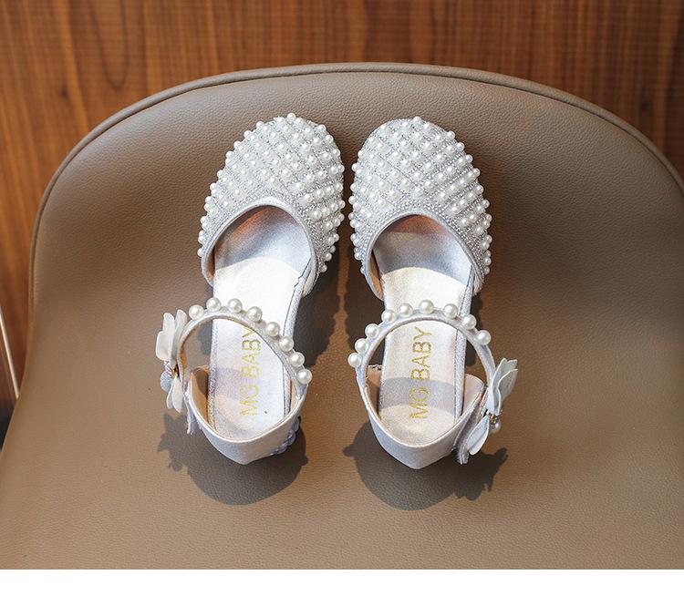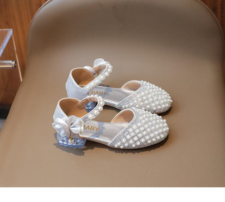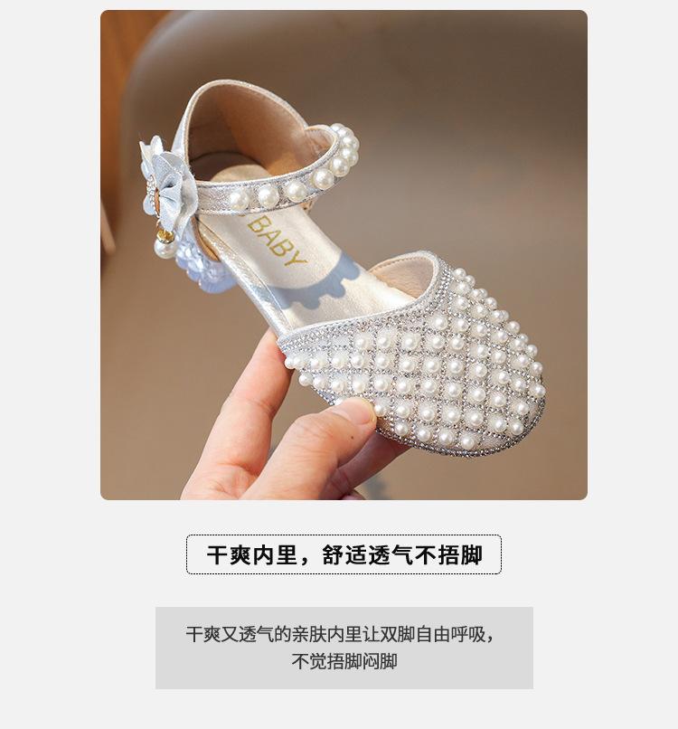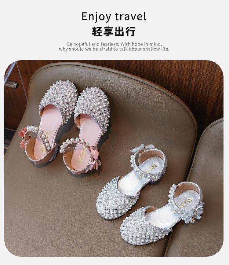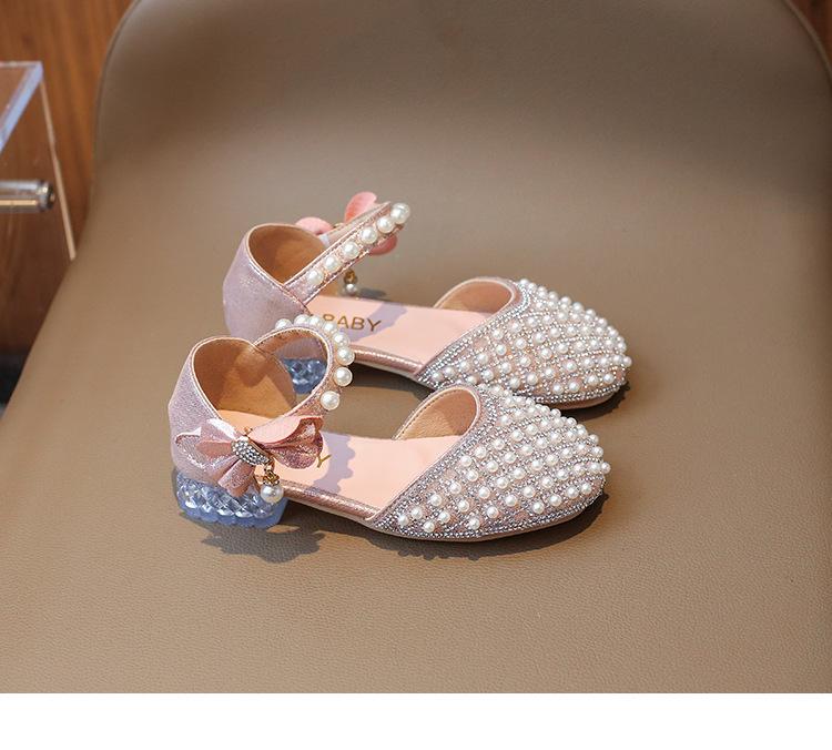 Sandálias Infantis 2025 Primavera e Verão Pérola Strass Meninas Sapatos de Princesa Coreanos Sapatos de Performance Sola Macia Antiderrapante Sapatos de Menina