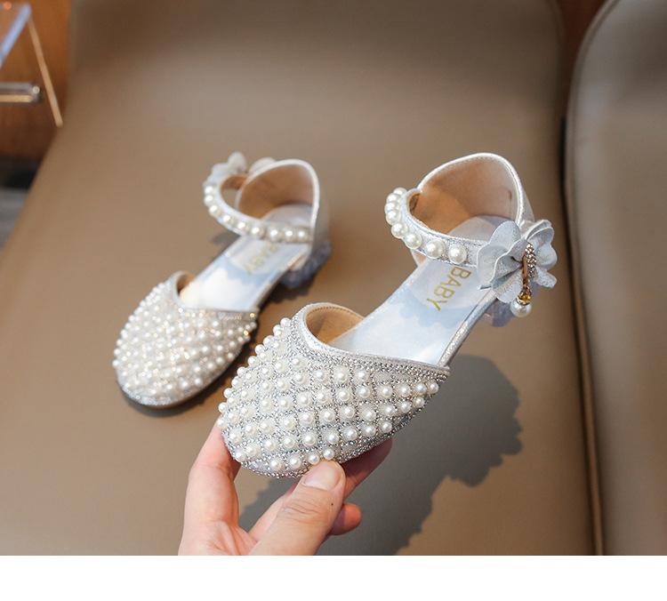 Compre Sandálias Infantis 2025 Primavera e Verão Pérola Strass Meninas Sapatos de Princesa Coreanos Sapatos de Performance Sola Macia Antiderrapante Sapatos de Menina no atacado no Joom.pro