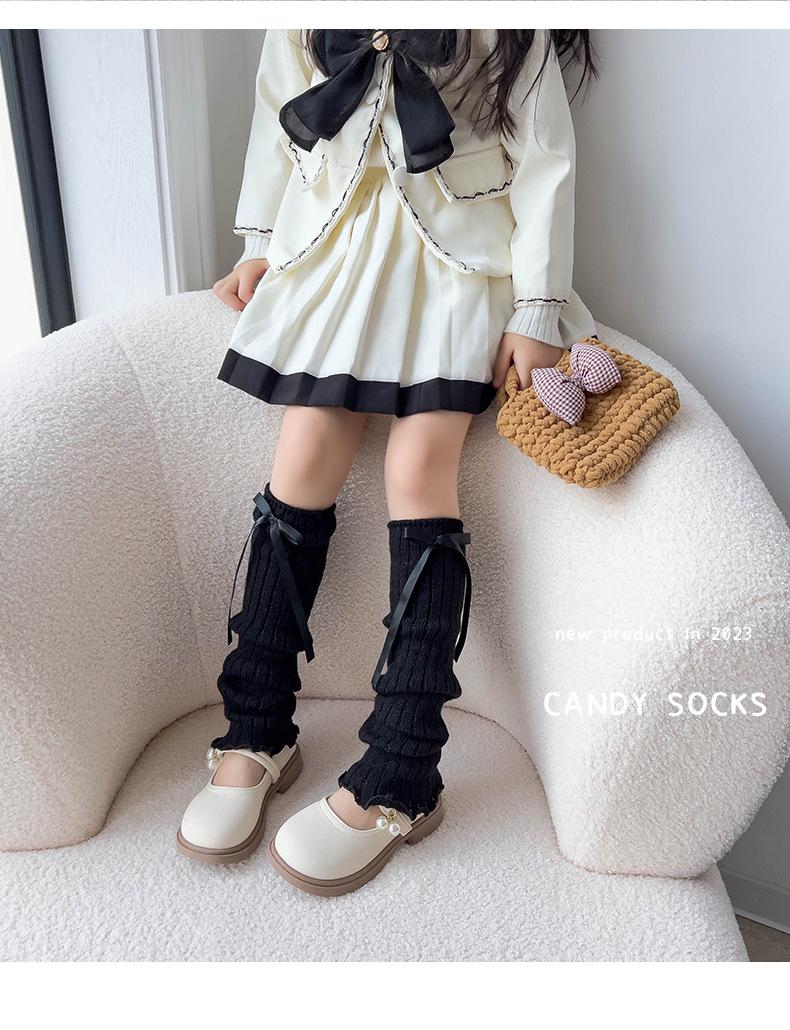 Meias infantis primavera e outono cor sólida arco laço pilha meias coreano doce menina leggings meias fábrica atacado