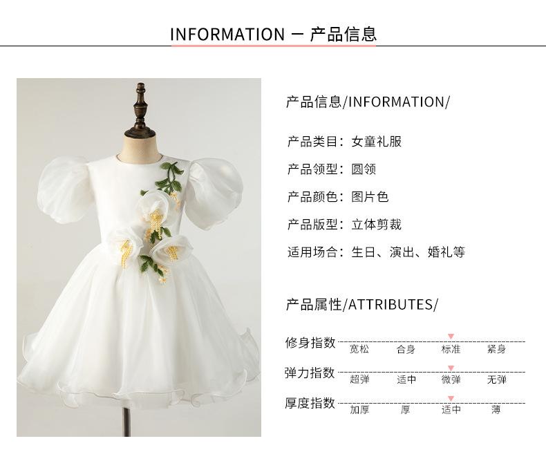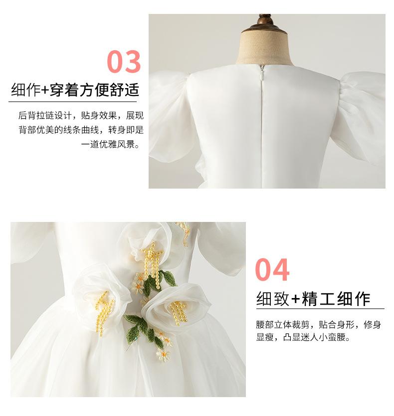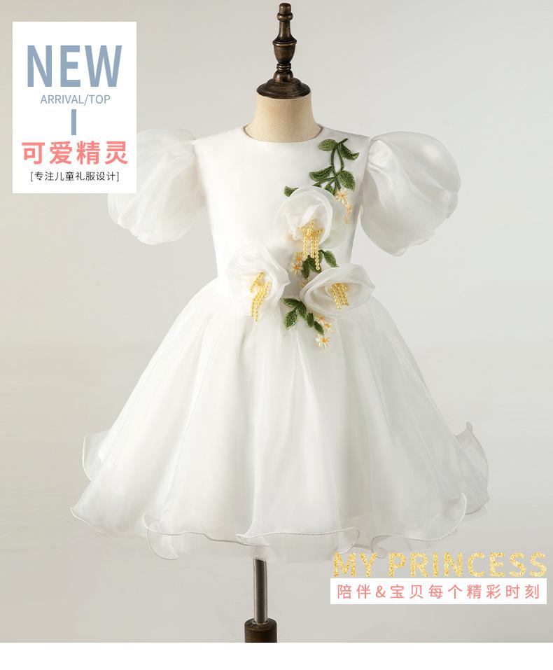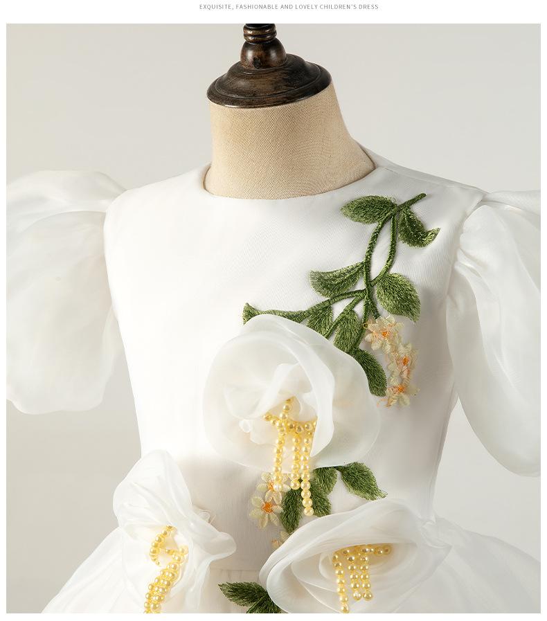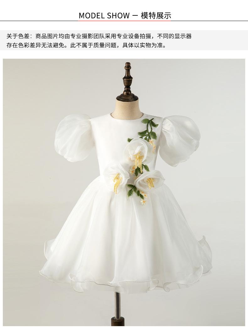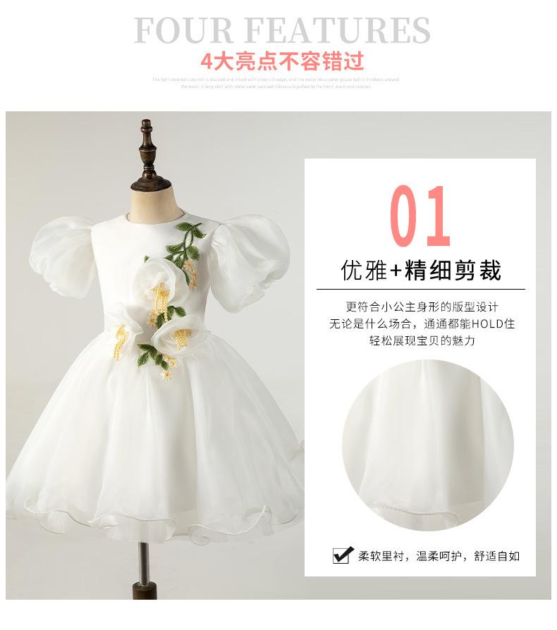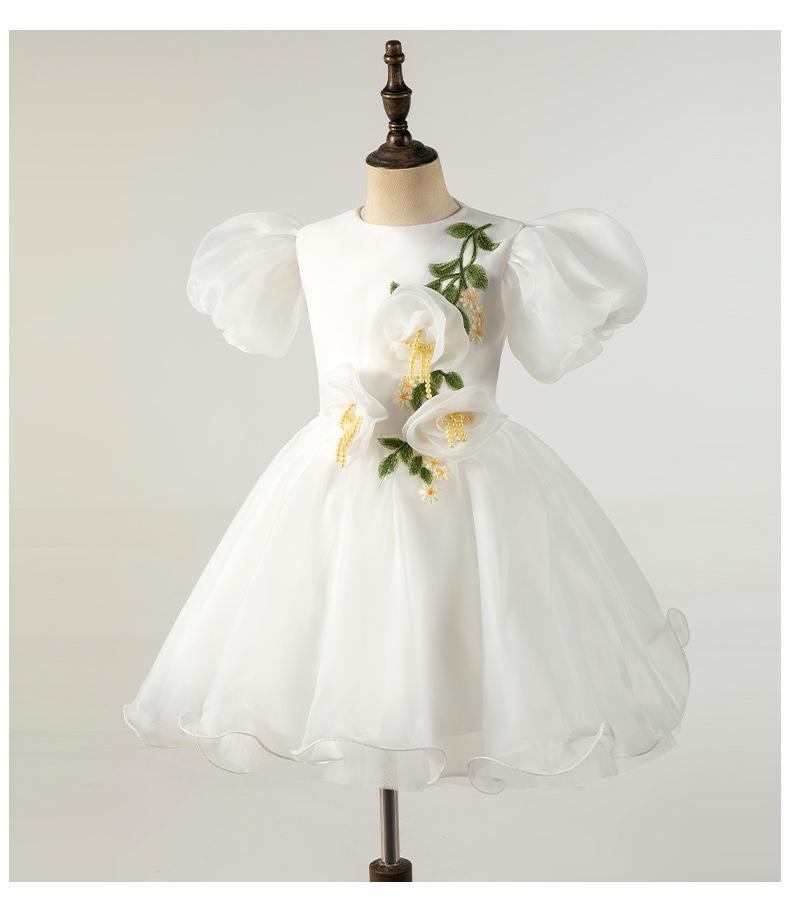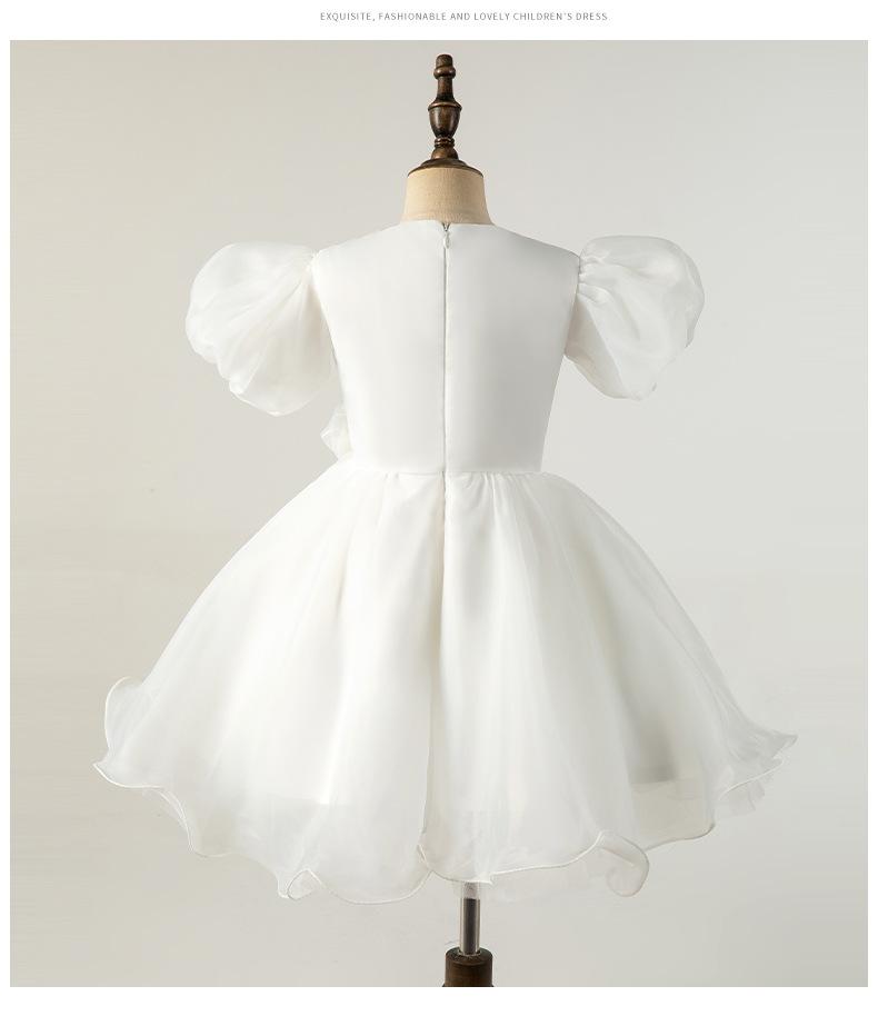 Vestido Infantil Vestido de Princesa Branco Aniversário da Menina Fio Bufante Modelo Show Menina Bebê Um ano de idade Grab Week Vestido Outono
