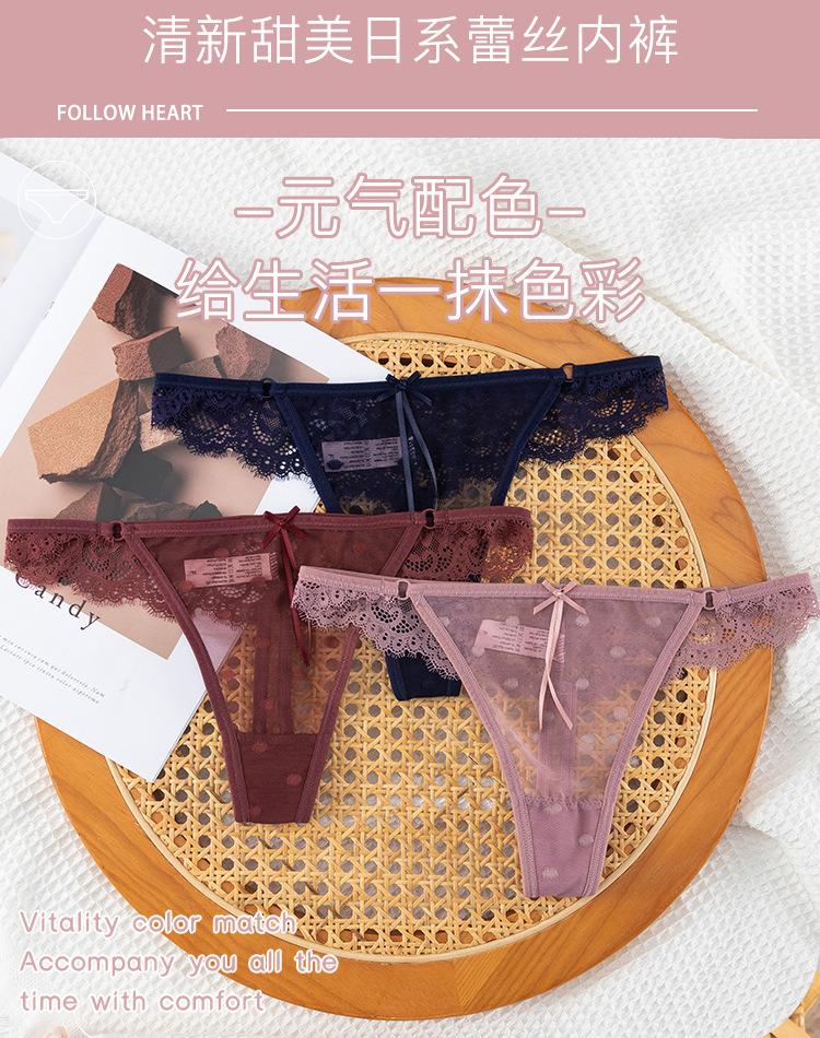 Cross-border Renda Cintura Baixa Thong Feminino Sexy respirável algodão Crotch calcinhas Feminina oca confortável cuecas