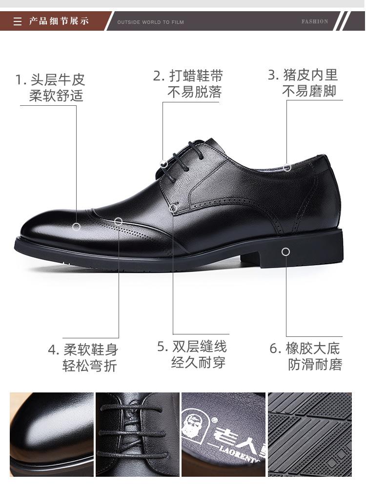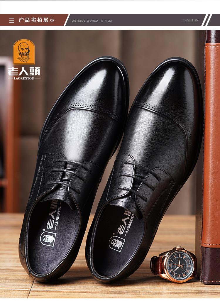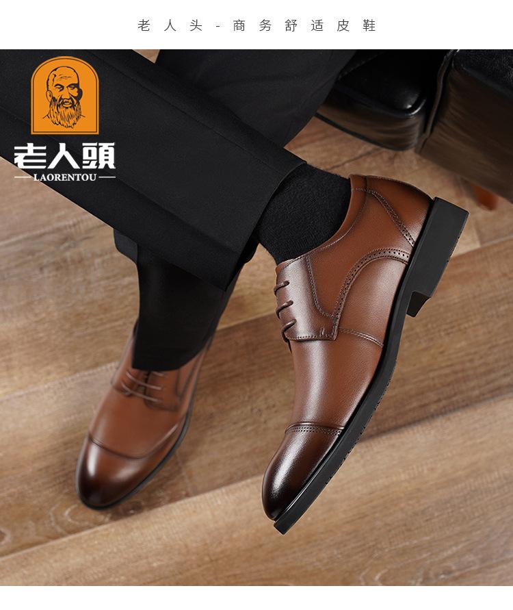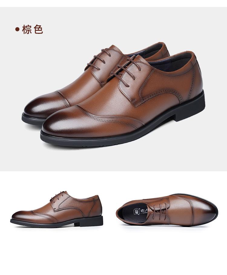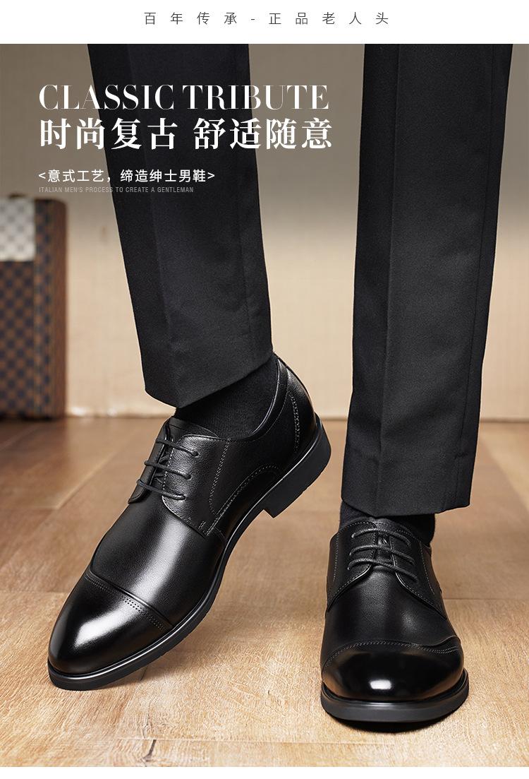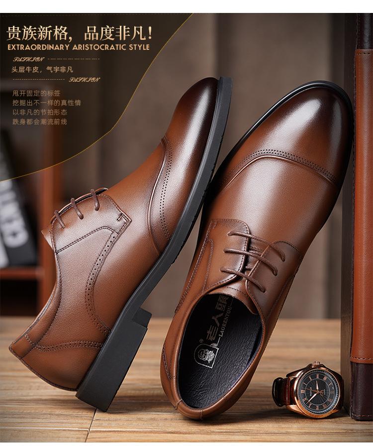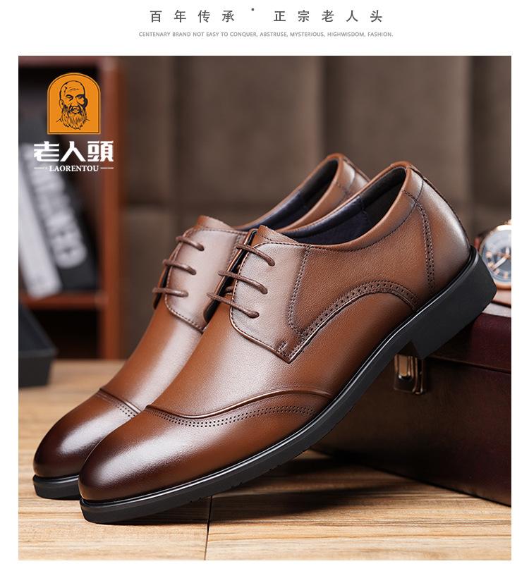 Sapatos de Couro para Homens Idosos, Sapatos de Couro Casuais de Negócios para Primavera e Outono, Sapatos Formais de Casamento de Couro de Vaca de Primeira Camada com Cadarço para Homens 22557