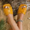 Chinelos Rasteiros para Mulheres 2024 Verão Novo Comércio Exterior Casual Bico Quadrado Rasteirinhas Salto Calçado Feminino Tamanho Grande