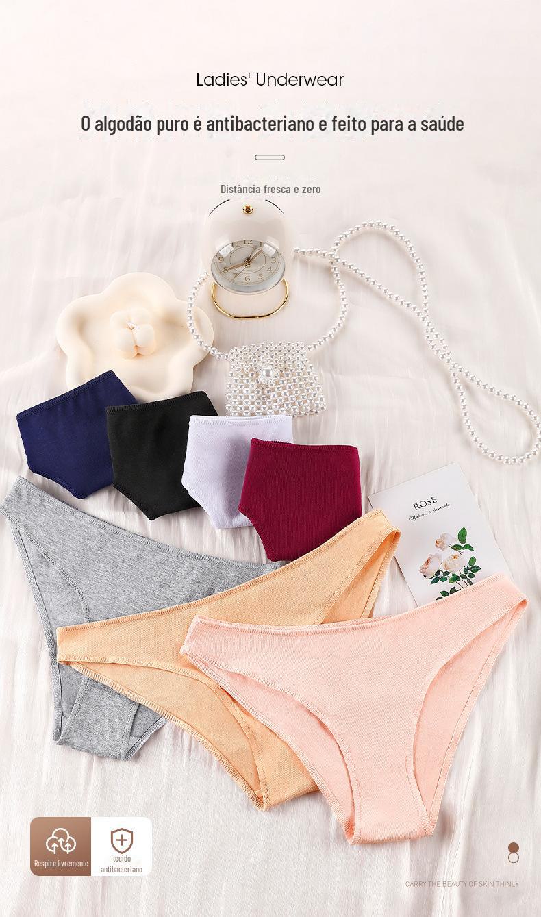 Roupa íntima feminina de algodão, cintura baixa, tamanho grande, japonesa, meio quadril, confortável, respirável e agradável à pele, calcinhas femininas, virilha de algodão respirável