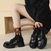Estudante de estilo britânico sapatos de couro decotado de sola grossa muffin de salto grosso Sapatos de camada única da faculdade mocassins decorativos mutáveis de estilo coreano feminino