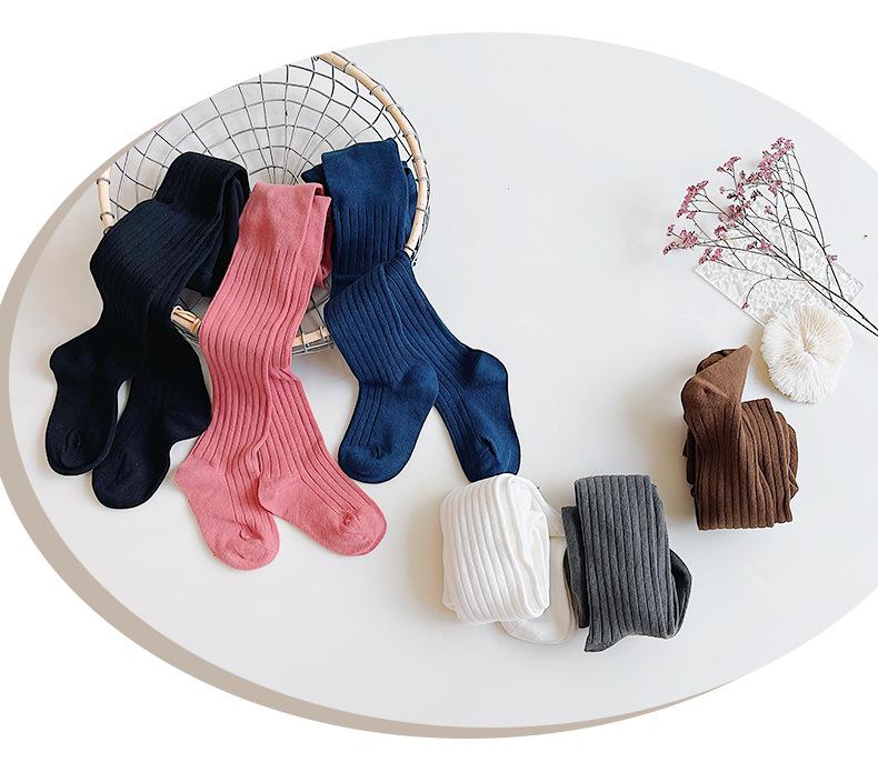 2022 meia-calça infantil outono e inverno novo elástico vertical médio e grande meia-calça infantil estilo coreano cor sólida leggings femininas