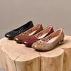 Sapatos baixos com bico redondo para mulheres, novo estilo britânico, outono 2023, sola macia, camada superior macia, mocassins de couro bovino com bico bordado