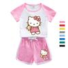 Hello Kitty cartoon impresso meninas 'summer suit novo infantil algodão shorts manga curta casual fino terno de duas peças