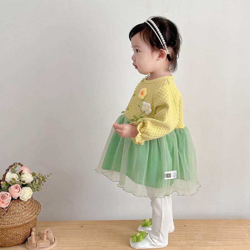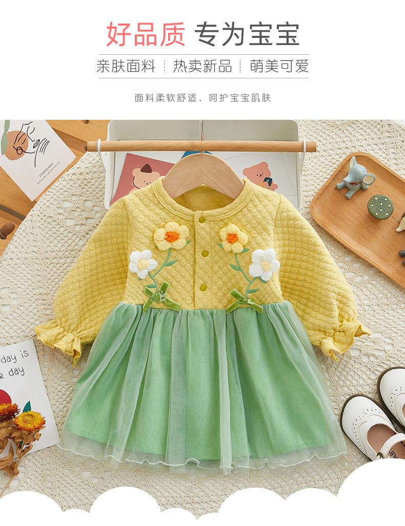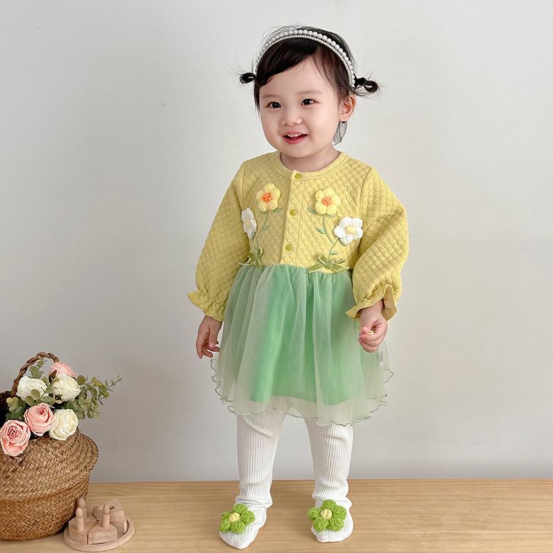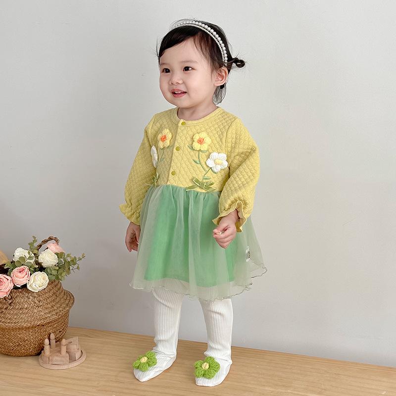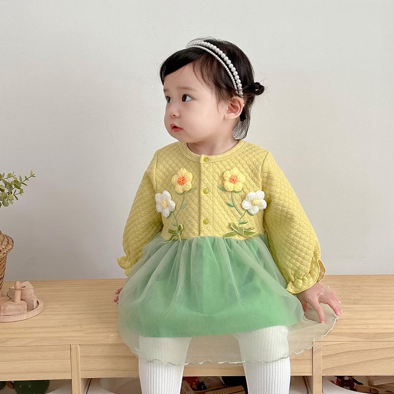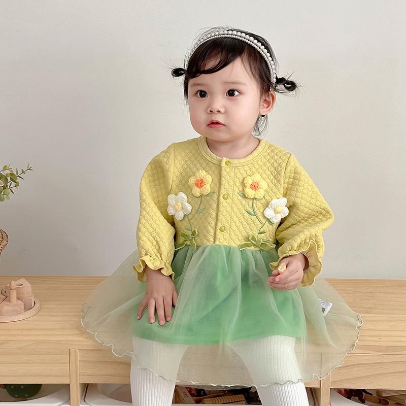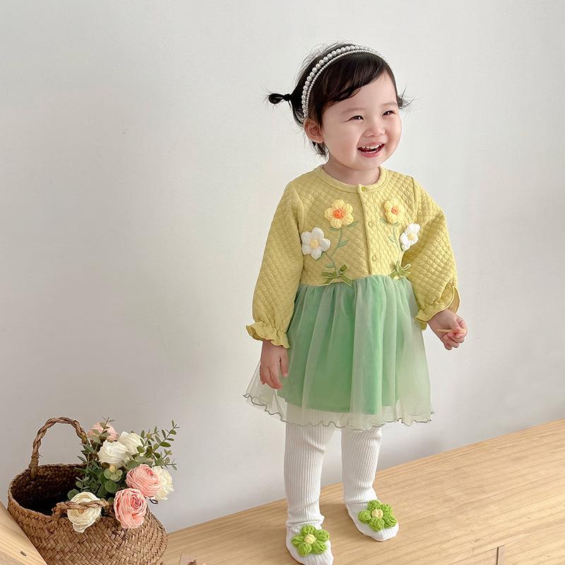 Vestido da menina outono novo tridimensional pequena flor primavera e outono infantil estilo ocidental vestido princesa vestido infantil bebê menina vestido de outono