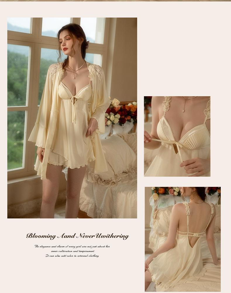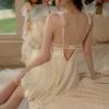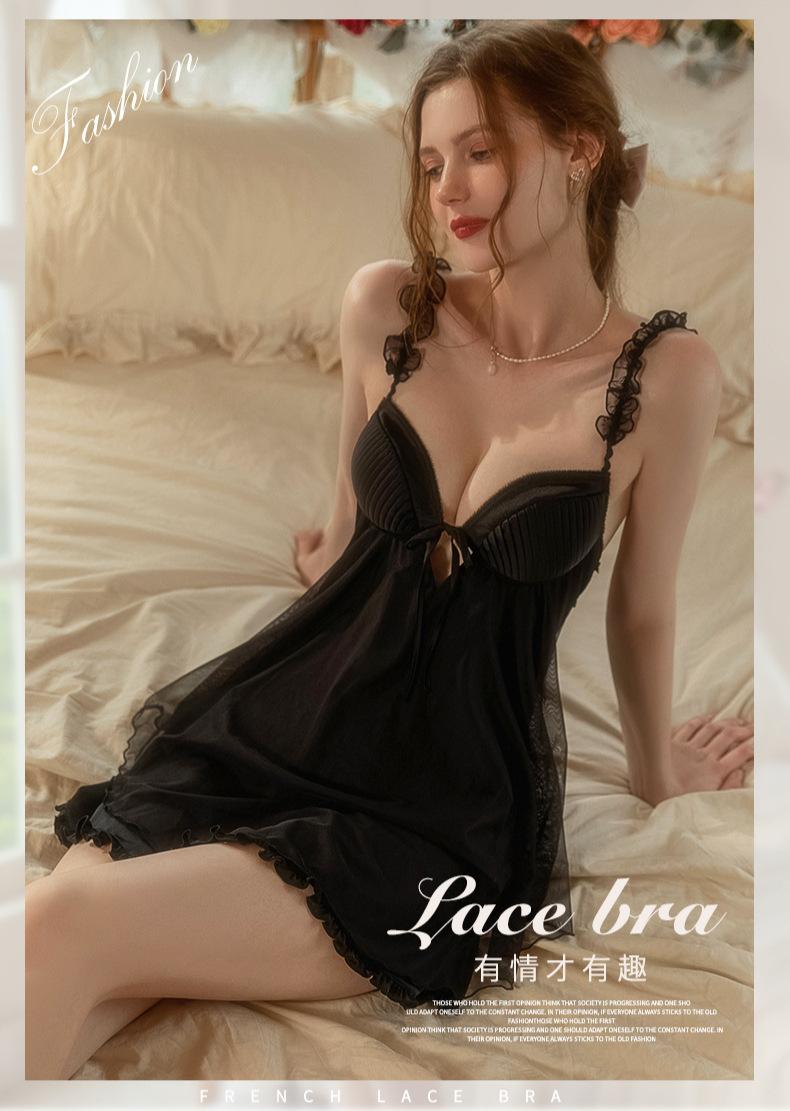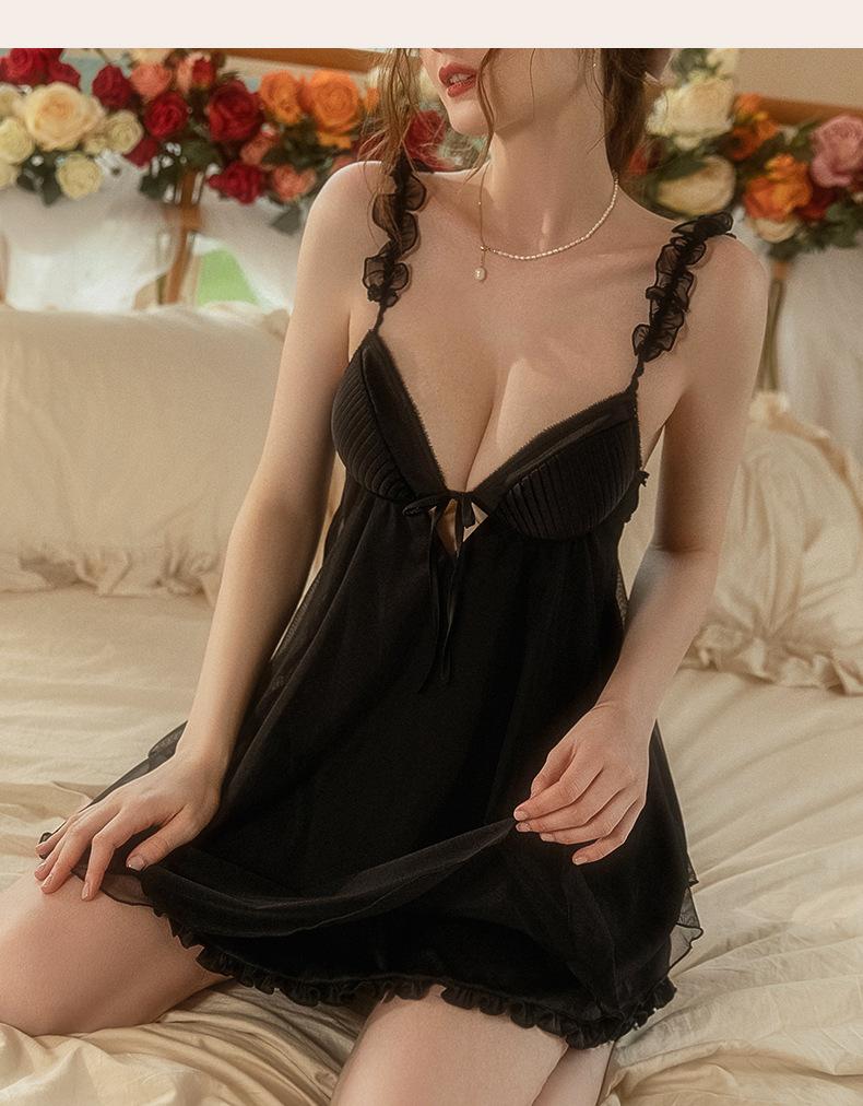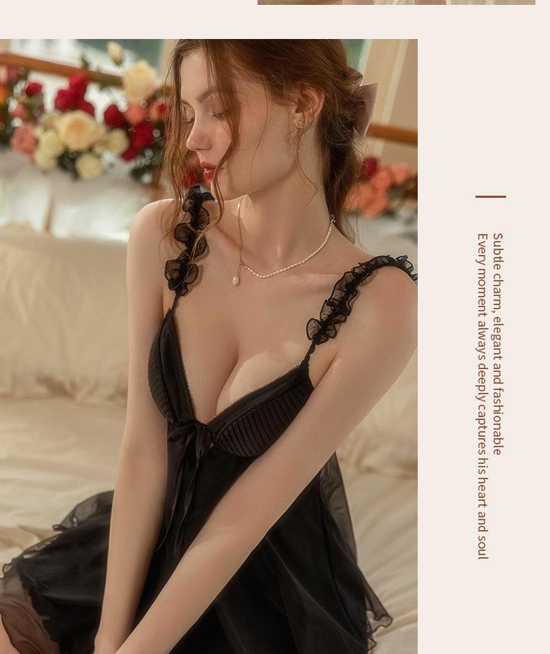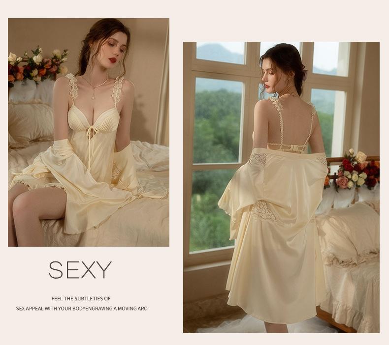 Novo pijama de seda de gelo sexy estilo francês profundo V lace-up A- linha de alta qualidade puro desejo estilo sexy nightdress home wear sling