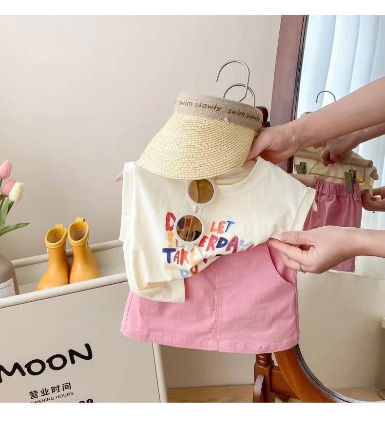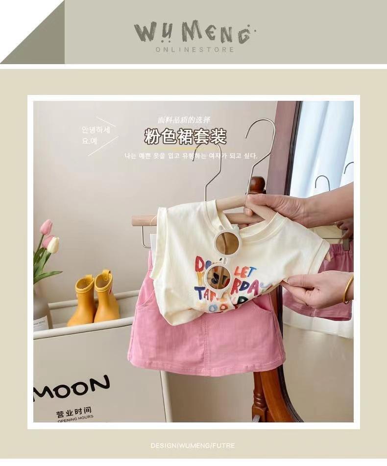 Conjunto de Verão para Meninas Casual 2023 Novo Moda Infantil Estilo Coreano Roupas de Verão para Bebê Menina Saia da Moda Conjunto de Duas Peças