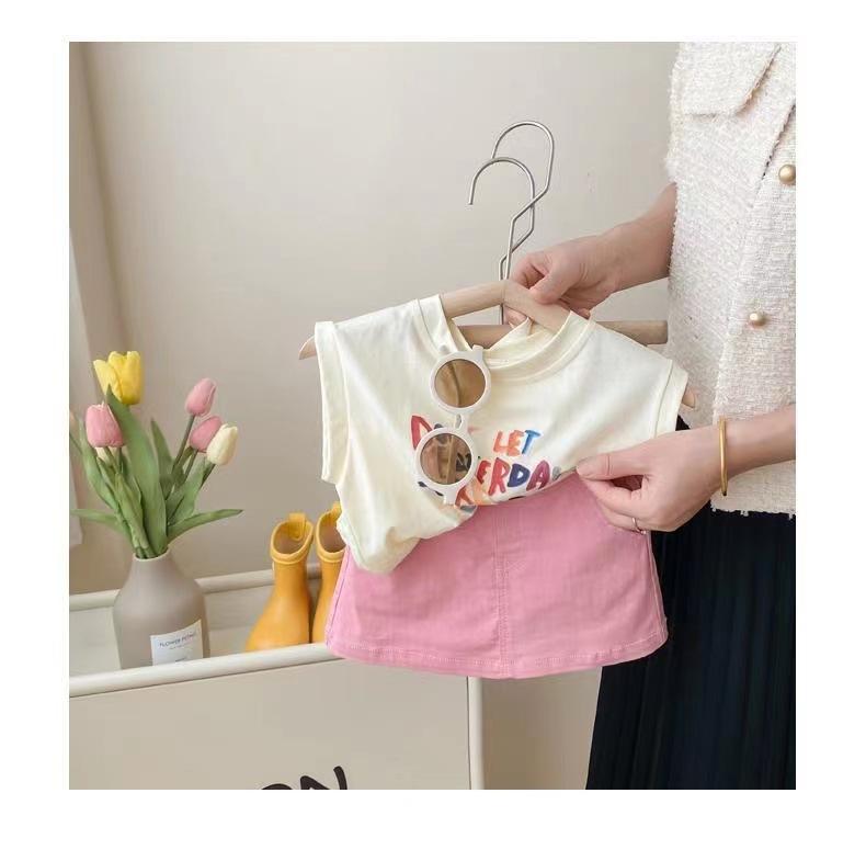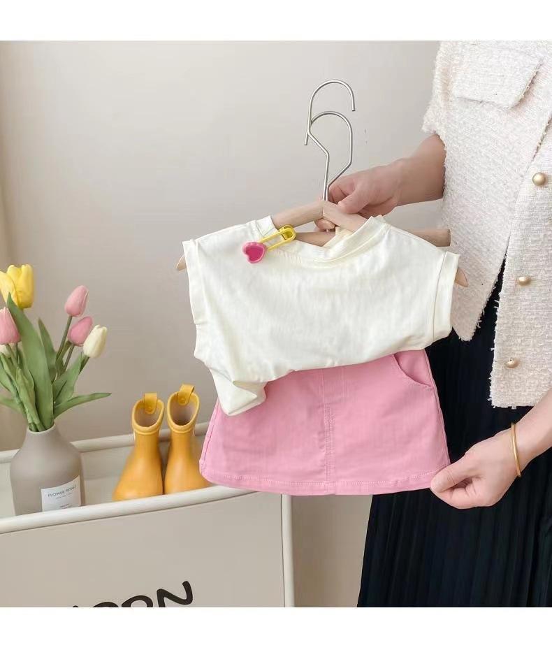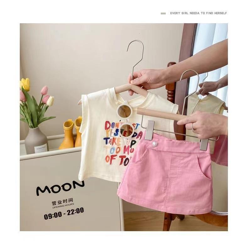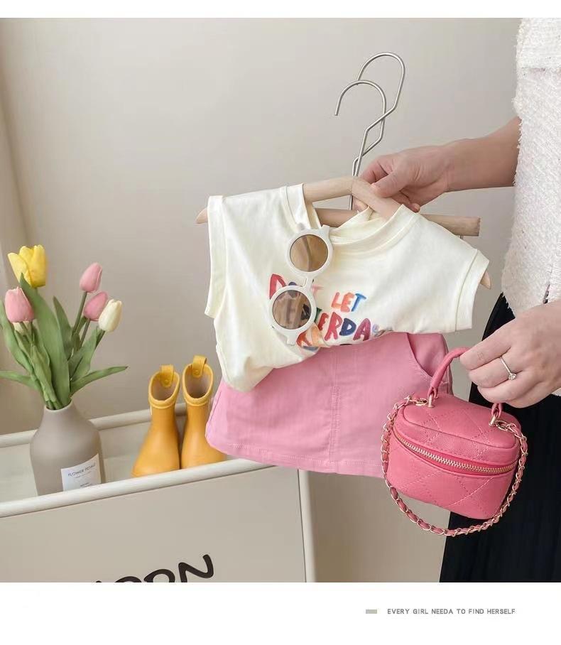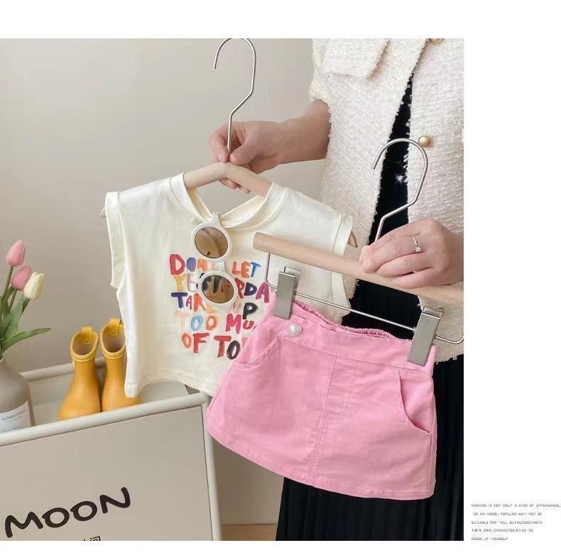 Conjunto de Verão para Meninas Casual 2025 Novo Estilo Infantil Estilo Coreano Bebê Menina Verão Moda Saia Conjunto de Duas Peças