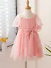Vestido de Manga Bufante para Meninas 2026 Primavera Novo Estilo Vestido de Bebê Elegante Vestido Princesa de Tela para Crianças Pequenas