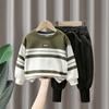 Terno de outono para meninos, suéter estilo ocidental infantil bonito e elegante, terno de duas peças para meninos, primavera e outono, rua frita, bebê, moda outono