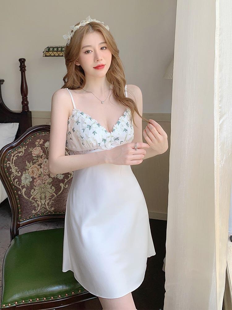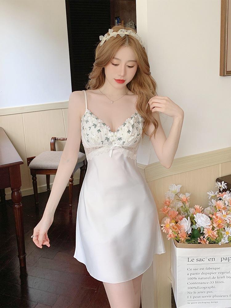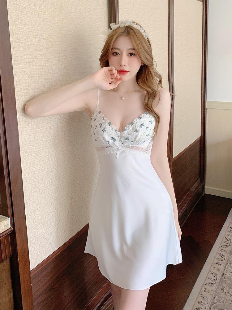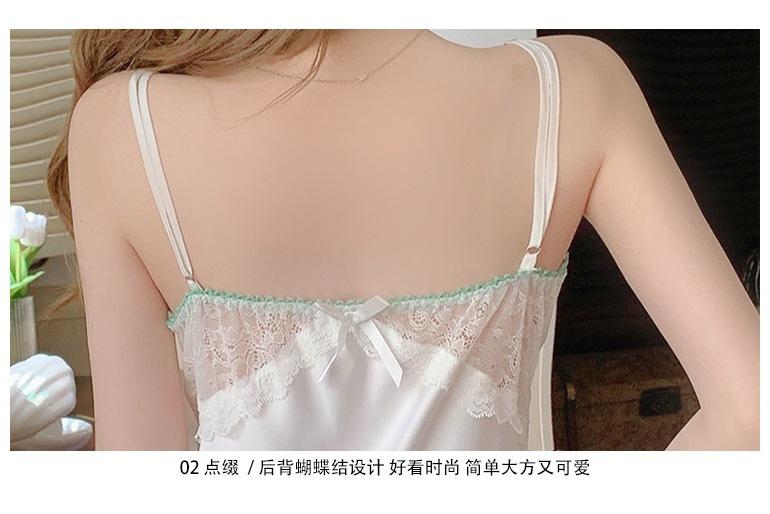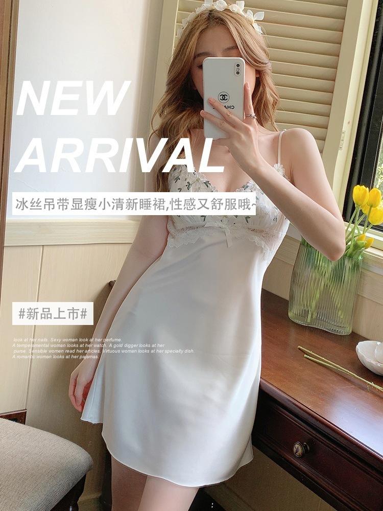 Primavera e Verão Gelo Seda Mulheres camisola fina seda Sling pijamas sexy cinto de seda peito almofada Home Roupas Cross Border