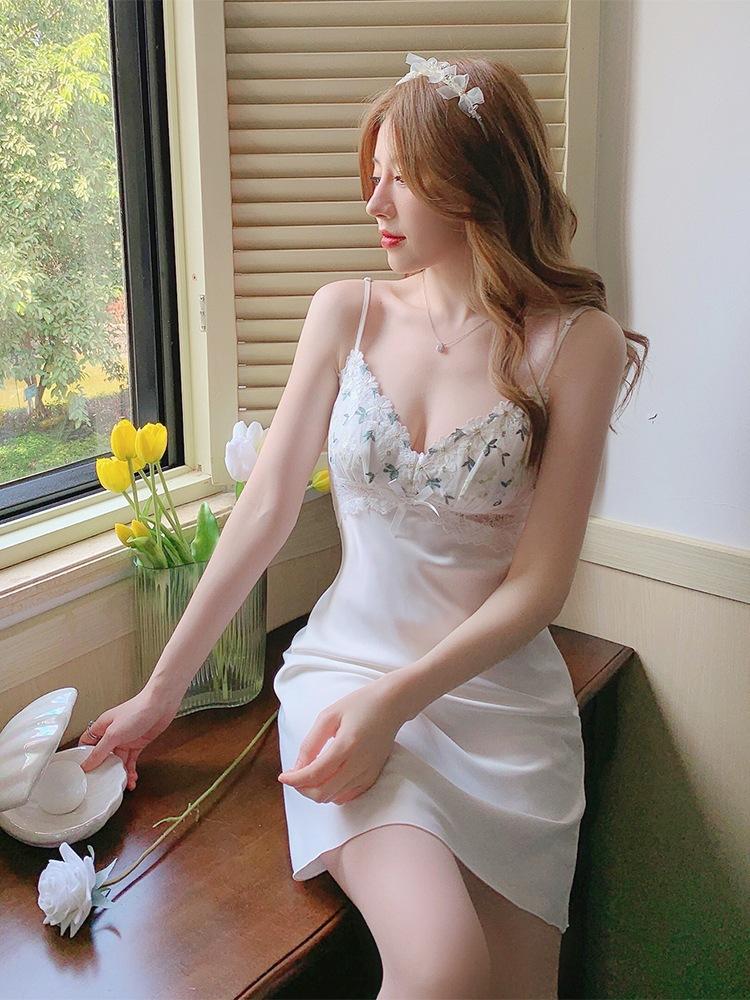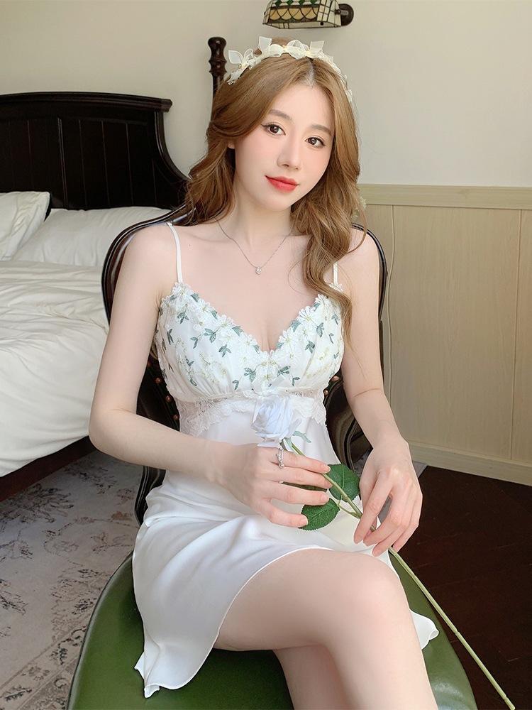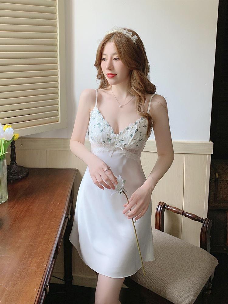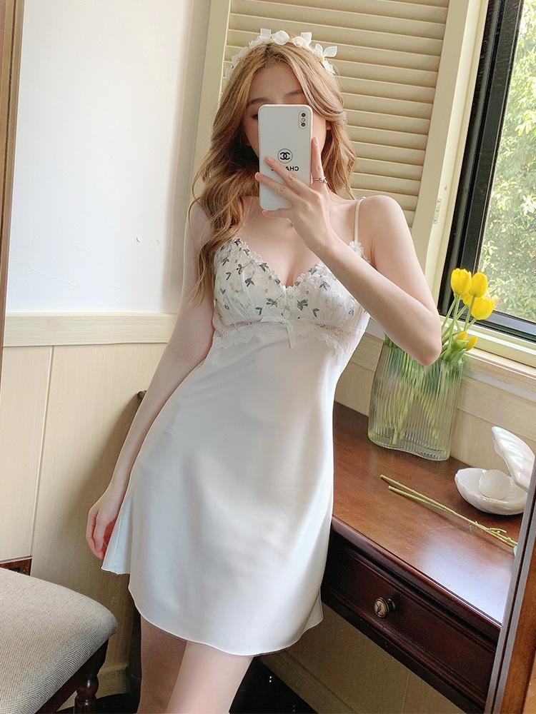 Primavera e Verão Gelo Seda Mulheres camisola fina seda Sling pijamas sexy cinto de seda peito almofada Home Roupas Cross Border
