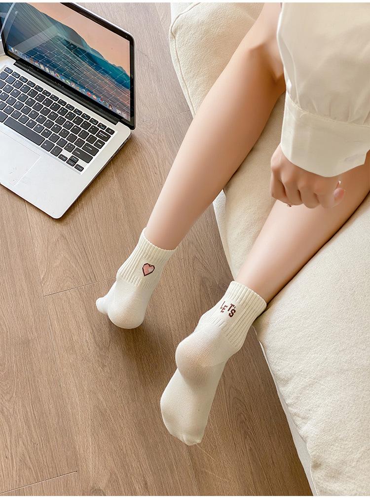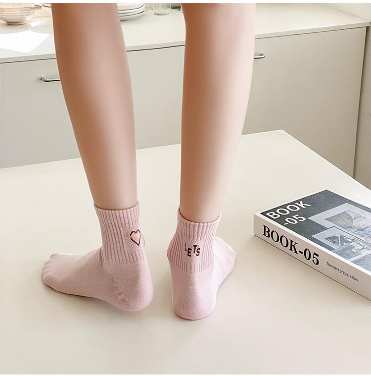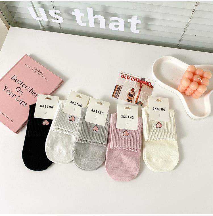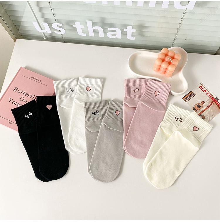 Meias femininas verão novas meias de comprimento médio da panturrilha salto em forma de coração sólido cor all-match meias de algodão respirável absorvente de suor meias curtas
